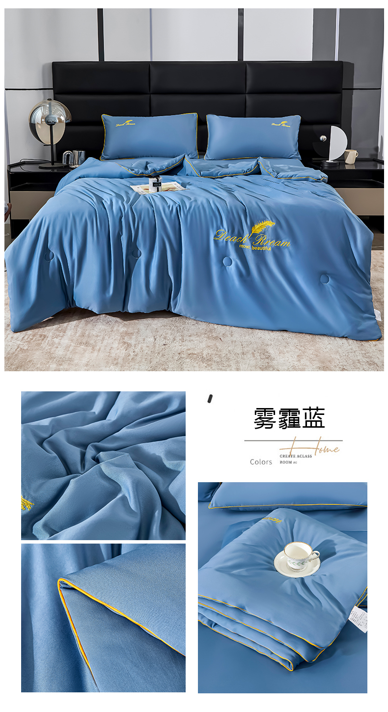 • 91家纺网 家纺一手货源 找家纺 缦绣阁家纺 2025春夏新款水洗真丝刺绣夏被凉感丝夏被冰淇淋夏凉被空调被 雾霾蓝