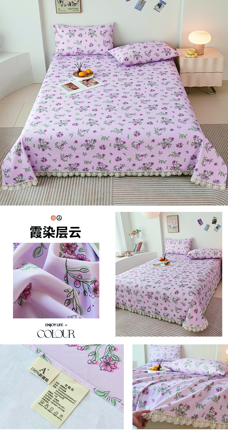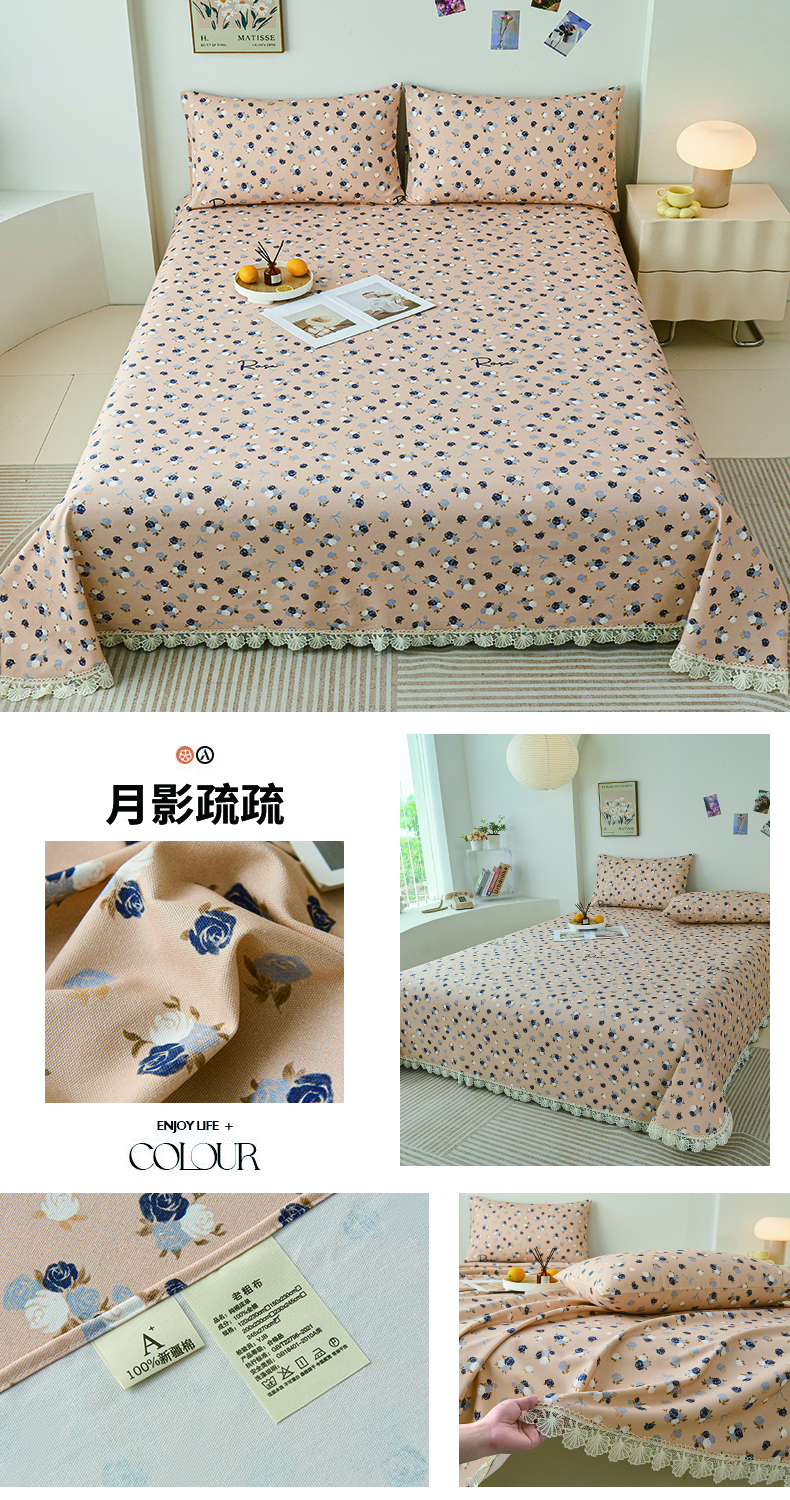 义博家纺 2025新款纯棉老粗布花边款单床单 暮光予香