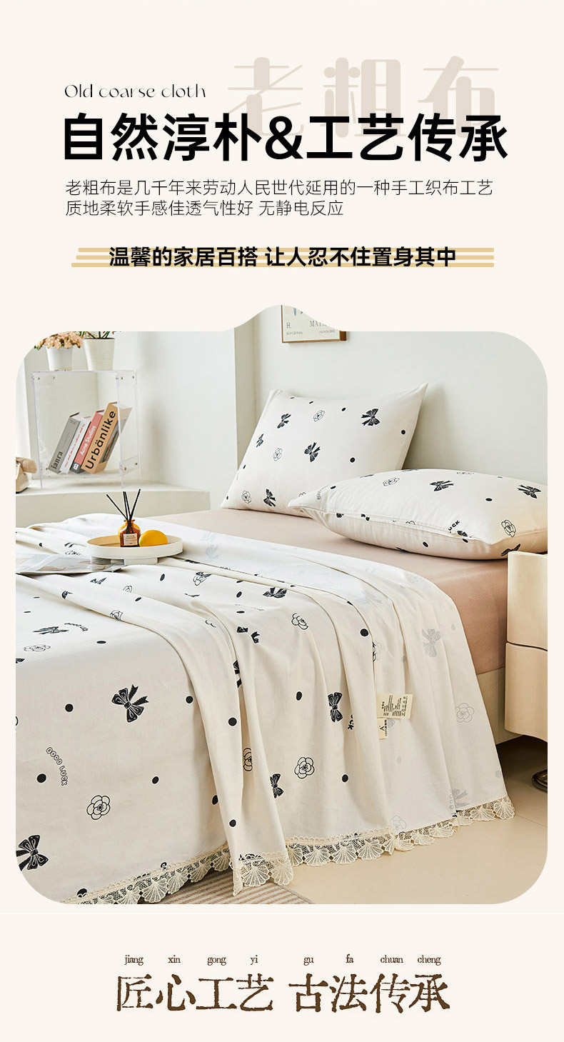 商品名称:义博家纺 2025新款纯棉老粗布花边款单床单 暮光予香