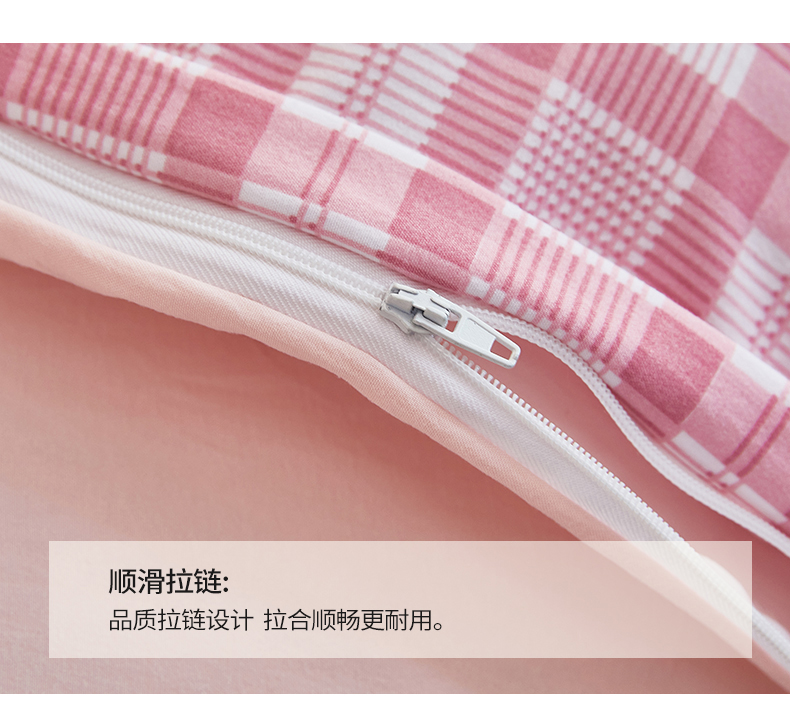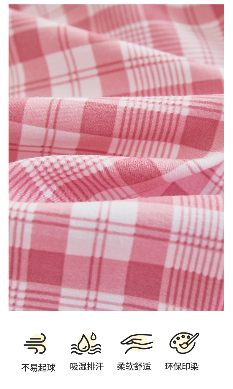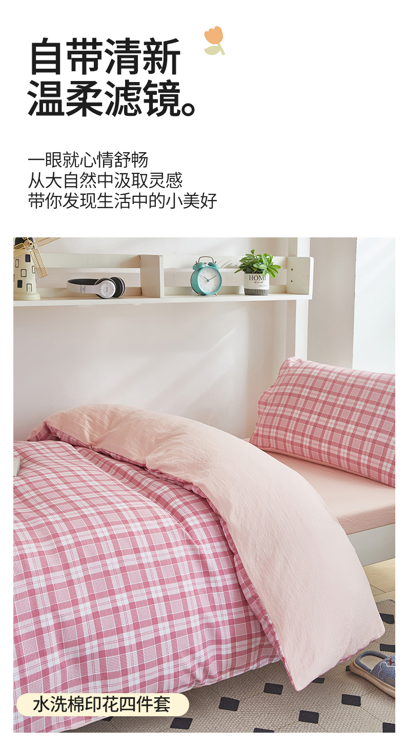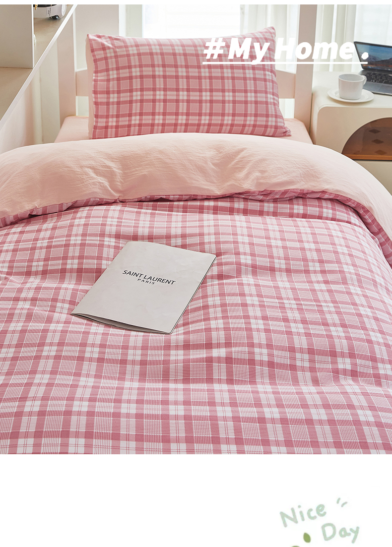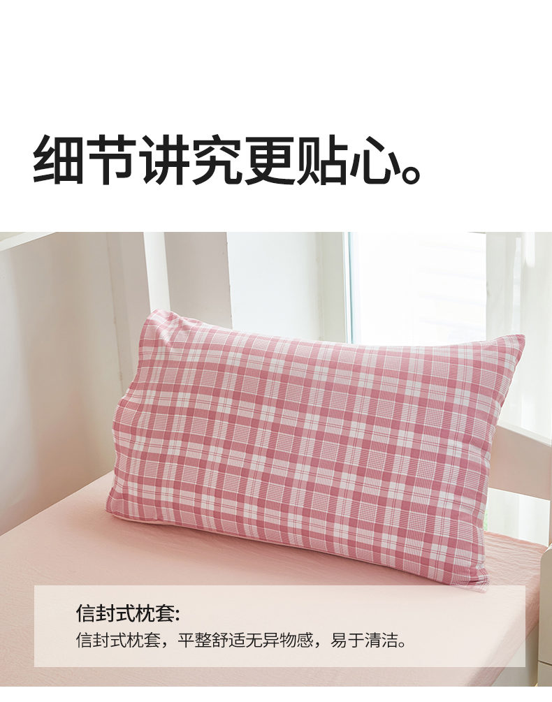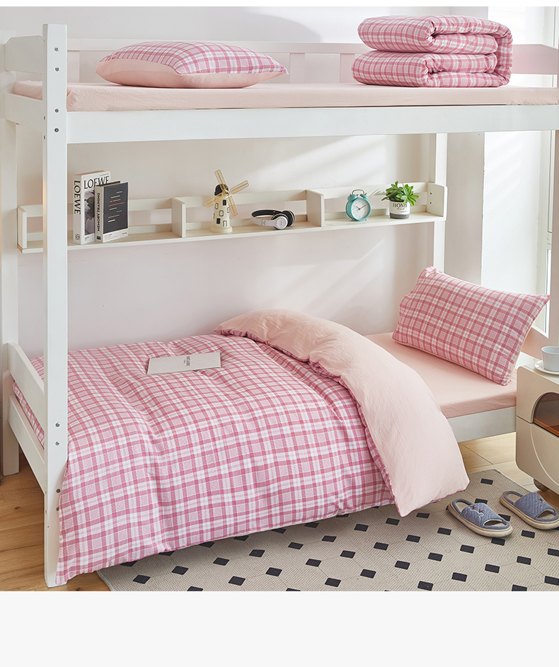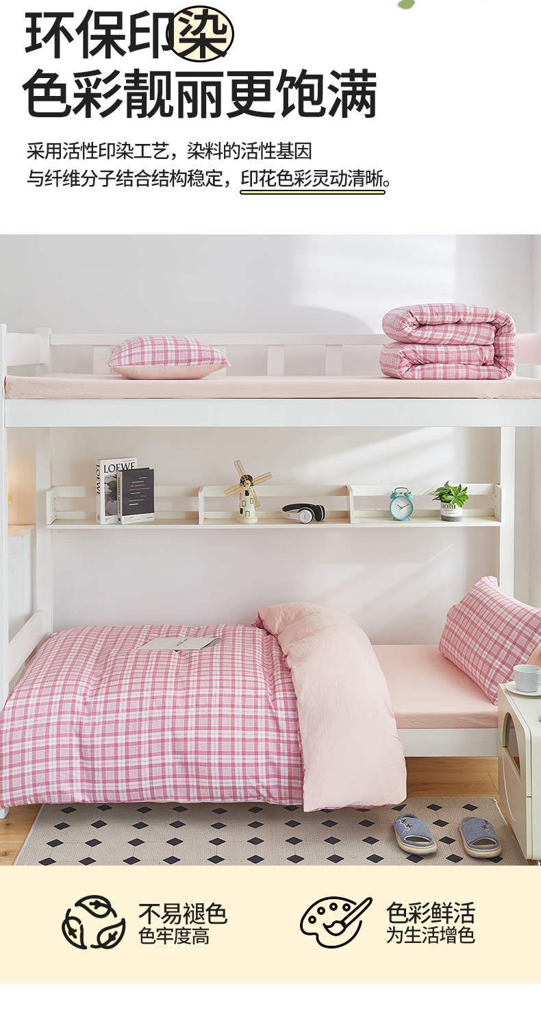 (总)恒科家纺 2025新款亲肤舒适小清新水洗棉四件套学生三件套-学生款宿舍三件套,格韵粉,蜜粉格,莫妮粉,莫妮兰,品格