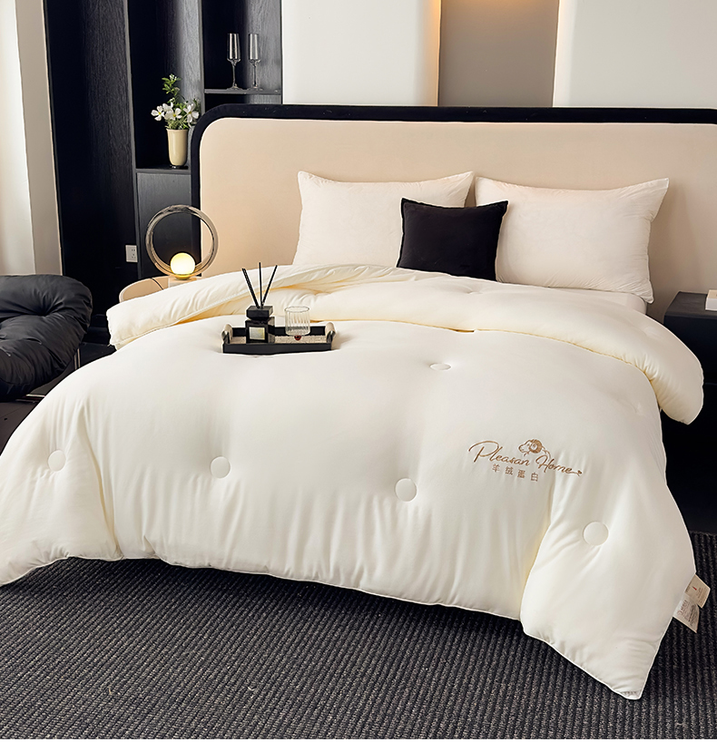商品名称:蓝雀翎 2025新款刺绣羊绒蛋白锁温被被子被芯 黛粉
