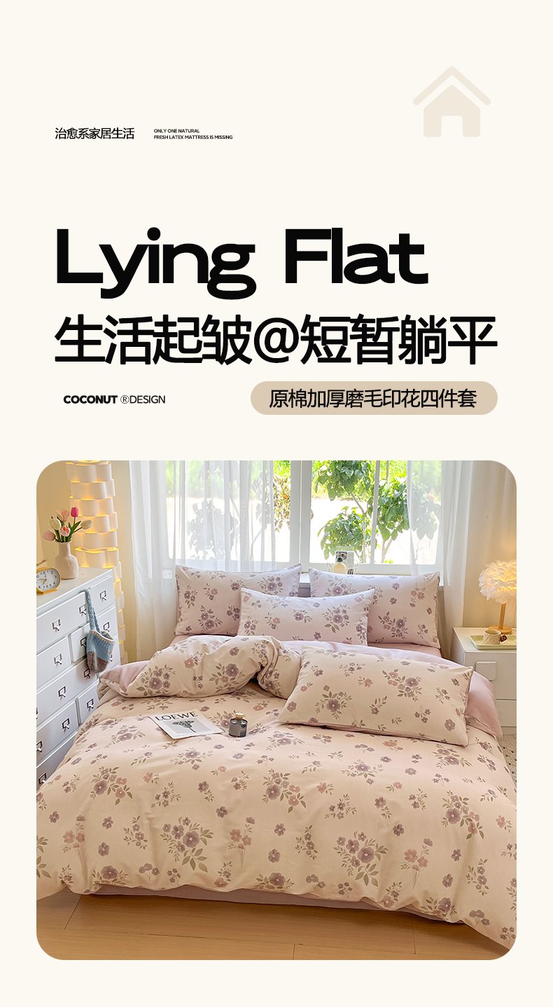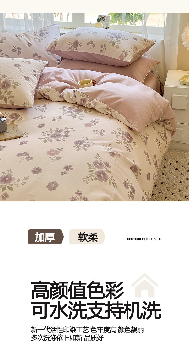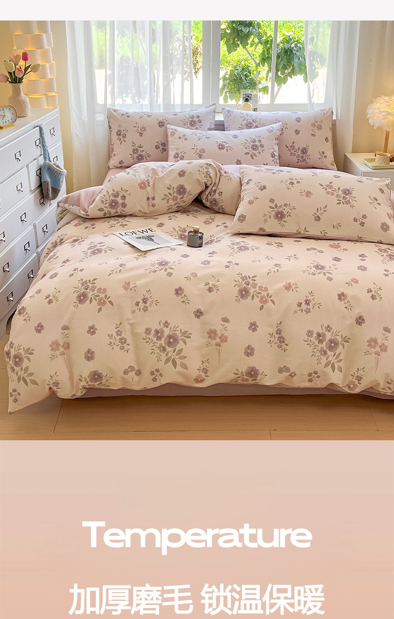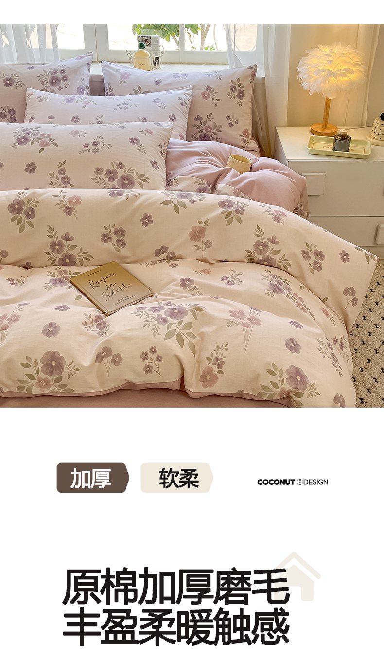当前位置: 91家纺网 > 商品网购 > 床品套件 > 四件套 > 普通磨毛四件套 > 涵宸家纺 2025新款原棉加厚磨毛印花四件套 云间花