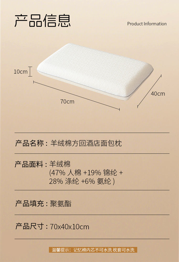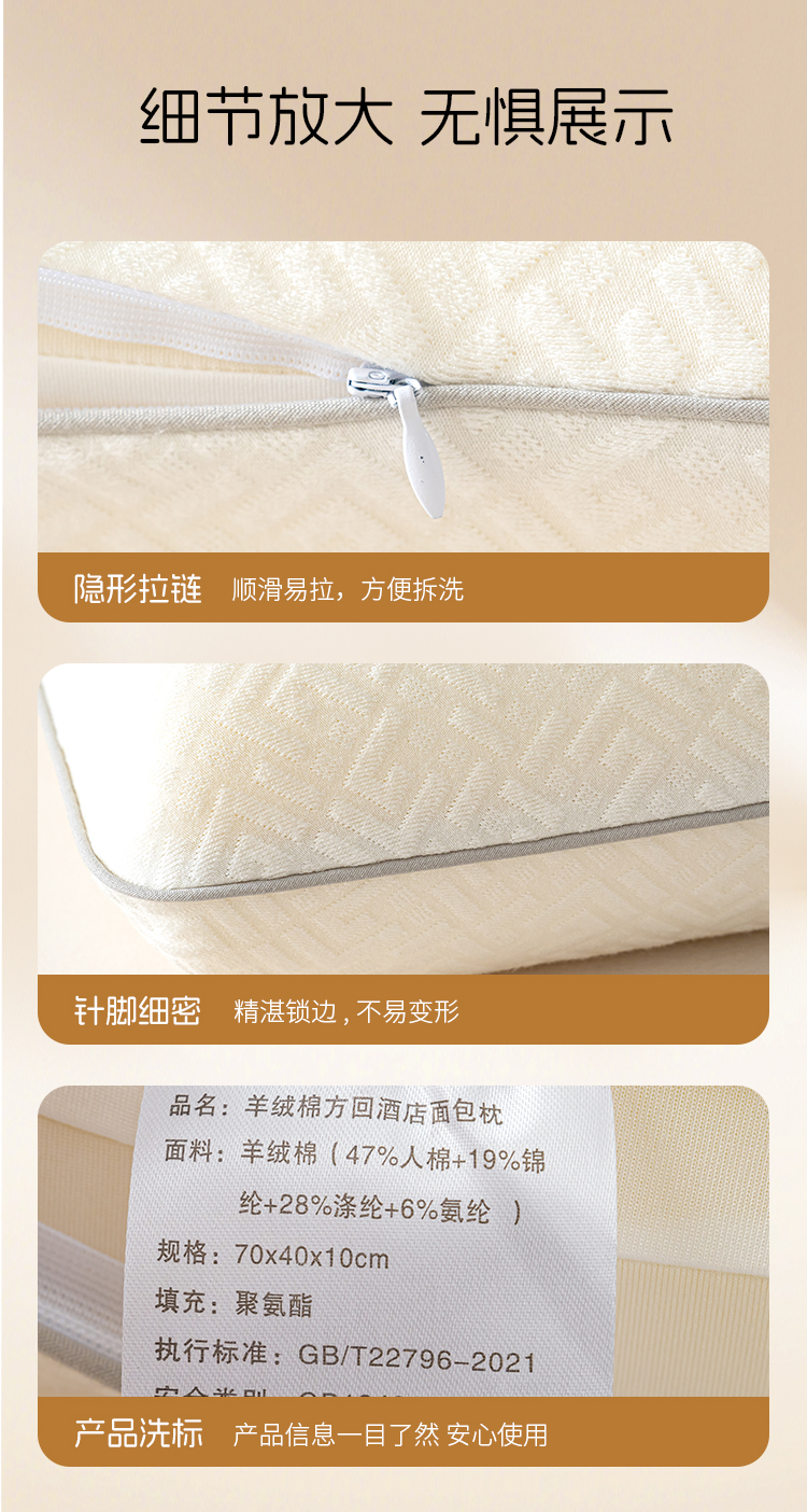 当前位置: 91家纺网 > 商品网购 > 枕头/枕芯/保健枕/颈椎枕 > 枕头枕芯 > (总)帛茗轩家居 2025新款羊绒棉方回酒店面包枕