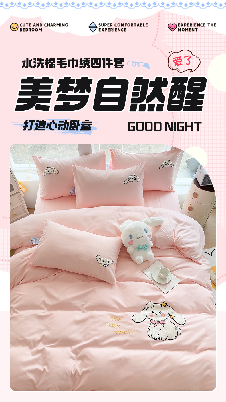 商品名称:(总)恋绒家纺 2025新款水洗棉毛巾绣卡通绣花学生三件套四件套