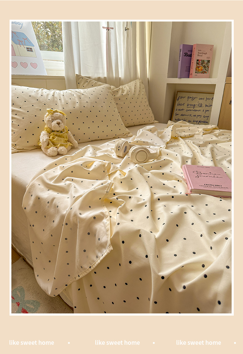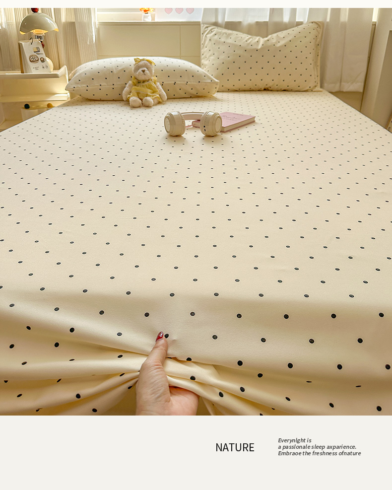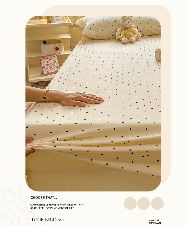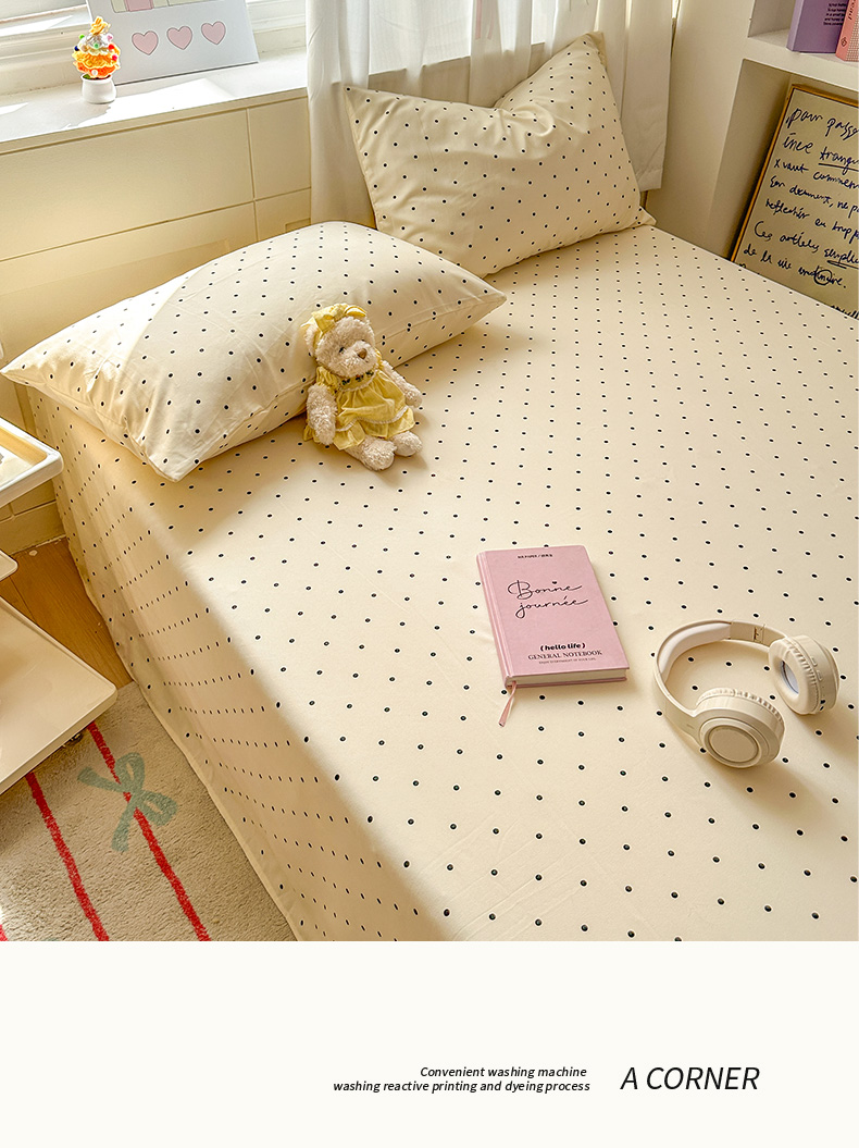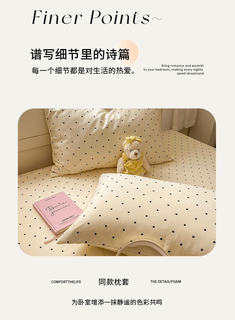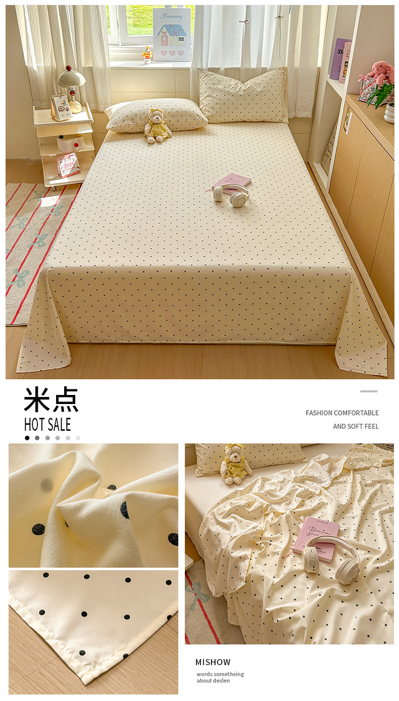冕悠家纺 2025新款A类加厚水洗棉格子点点印花超柔单品床单枕套 米点