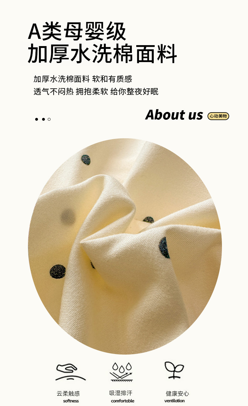 商品名称:冕悠家纺 2025新款A类加厚水洗棉格子点点印花超柔单品床单枕套 米点