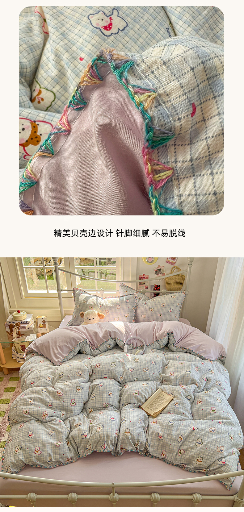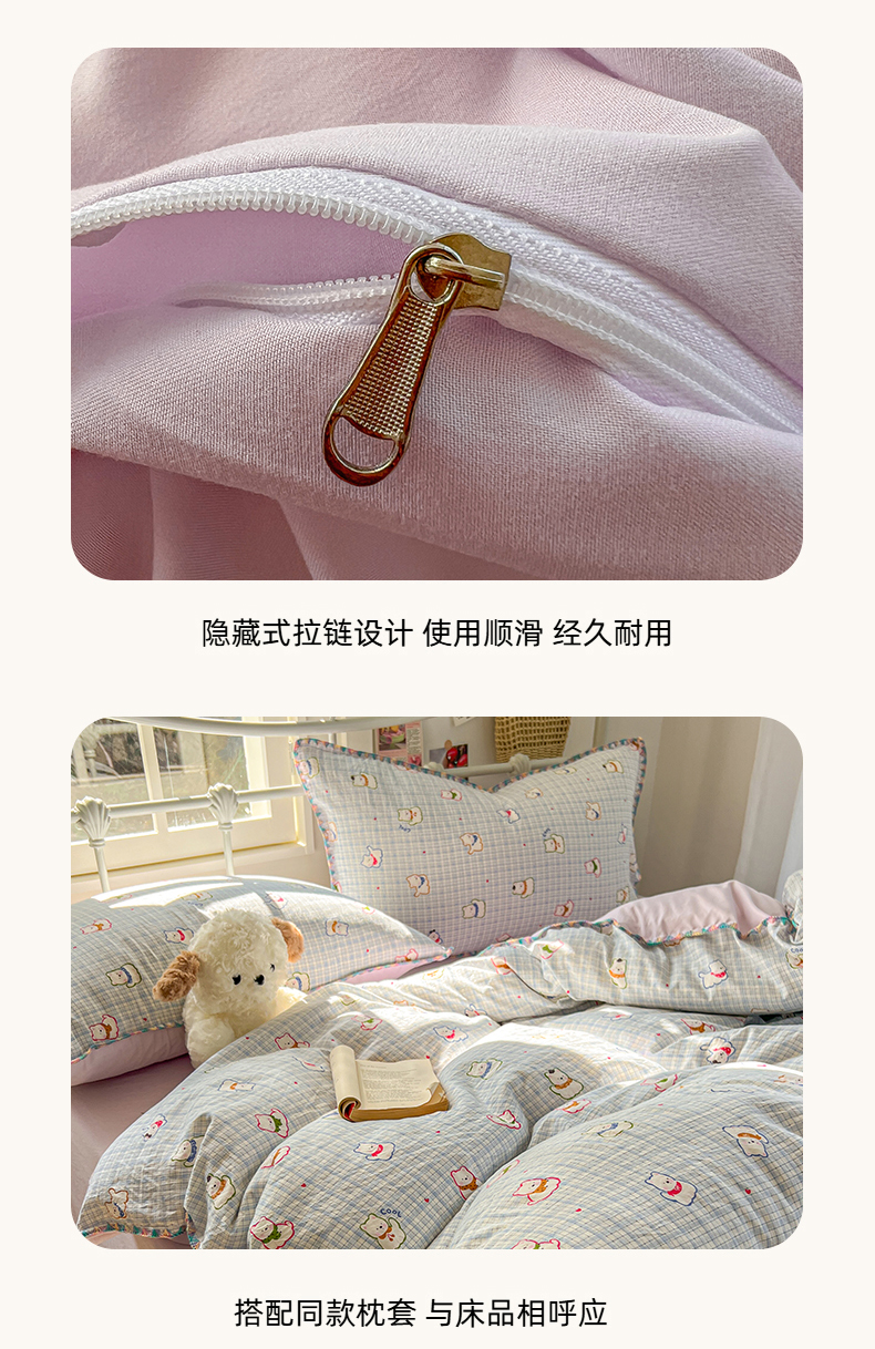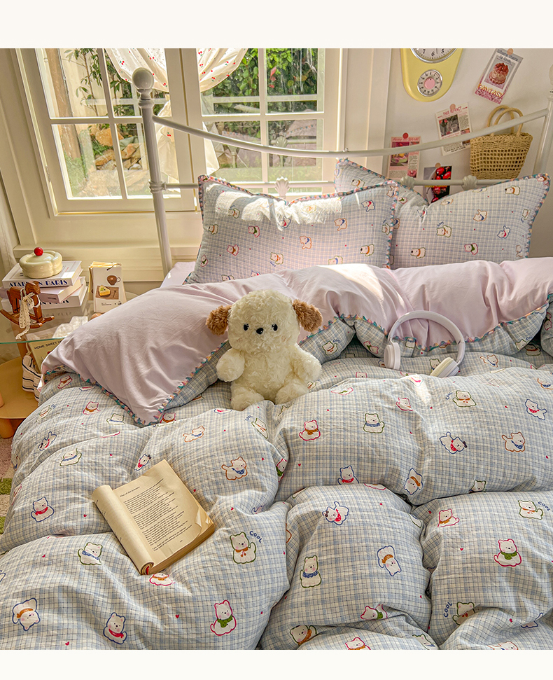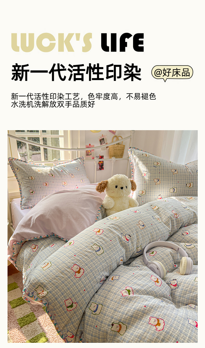 当前位置: 91家纺网 > 商品网购 > 床品套件 > 四件套 > 水洗棉四件套 > 冕悠家纺 2026新款超柔软卡通七彩贝壳边水洗棉四件套 提供买家秀 七彩- 狗狗奶紫