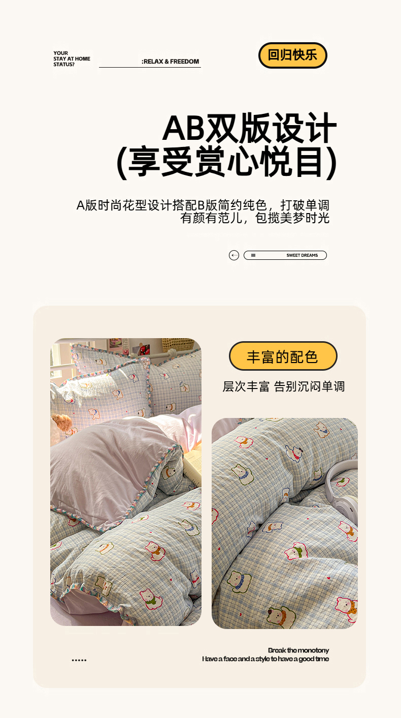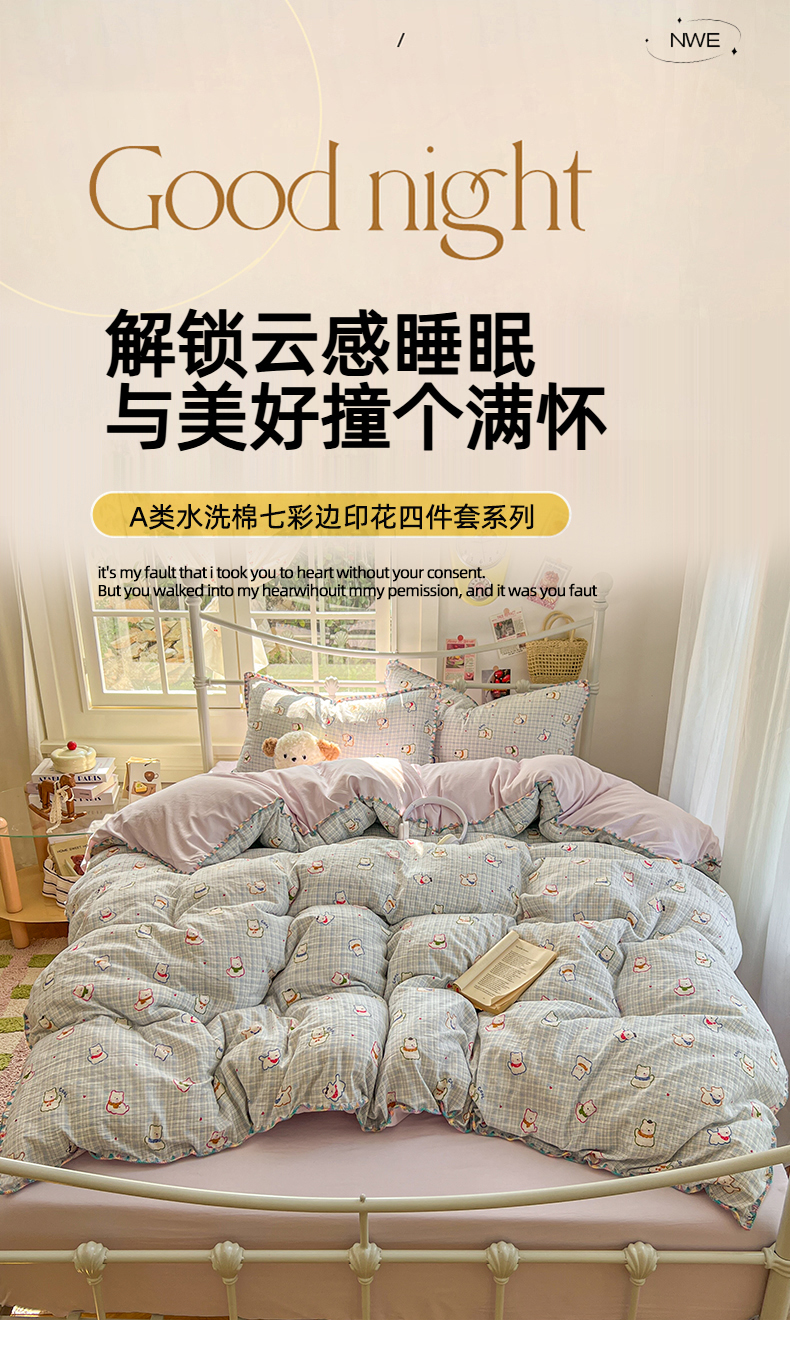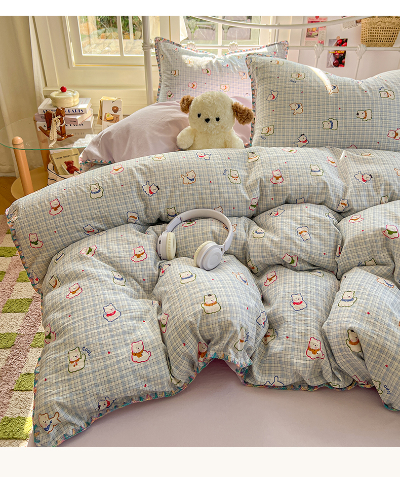 当前位置: 91家纺网 > 商品网购 > 床品套件 > 四件套 > 水洗棉四件套 > 冕悠家纺 2026新款超柔软卡通七彩贝壳边水洗棉四件套 提供买家秀 七彩- 狗狗奶紫