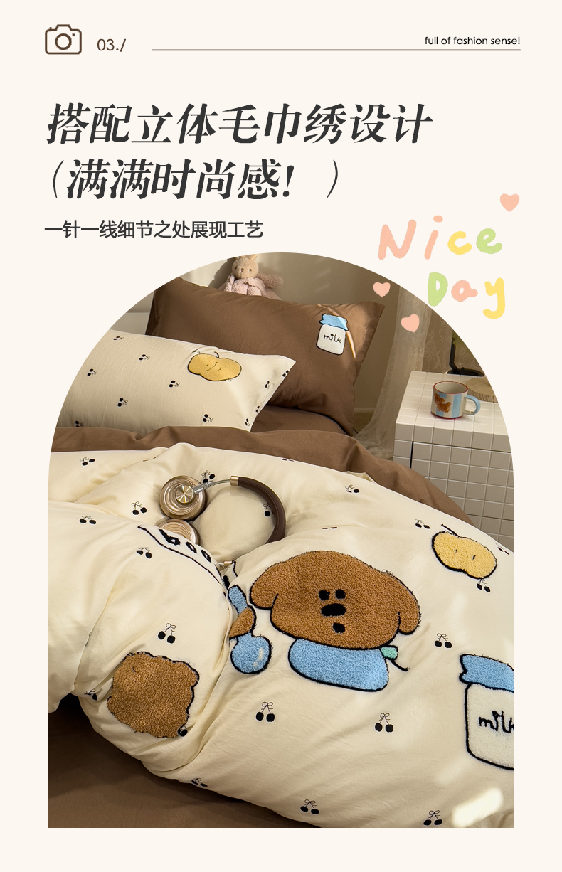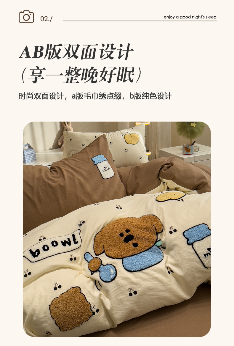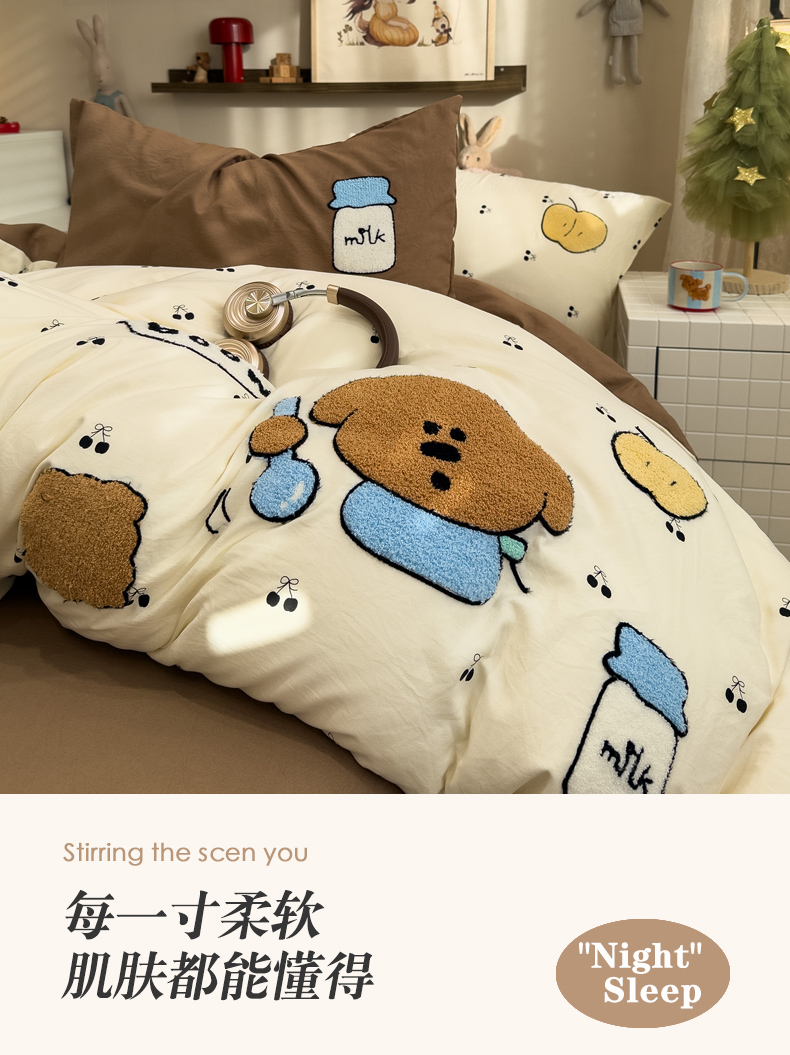 (总)曼谷家纺 2025新款软糯毛巾绣水洗棉四件套,绅士狗狗-芝士绿,香浓可可-奶咖,音乐节-豆绿芝士,音乐节-星球咖,布拉拉-芝士兰格