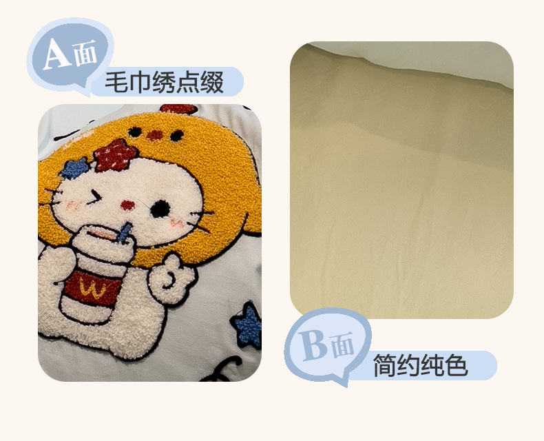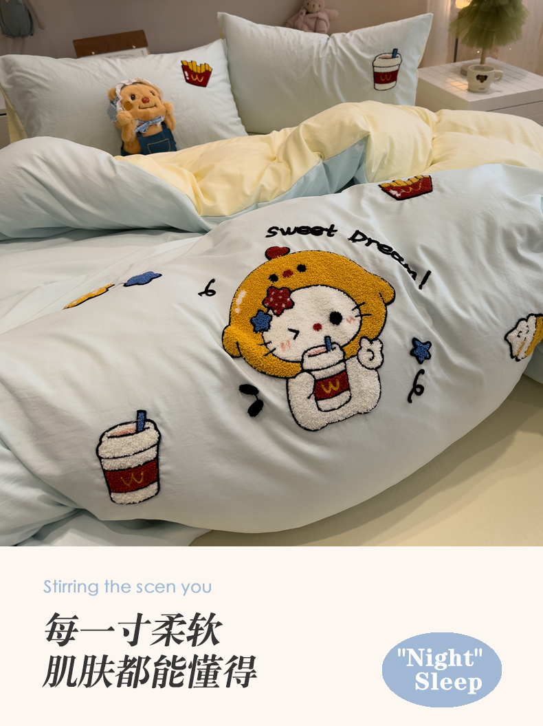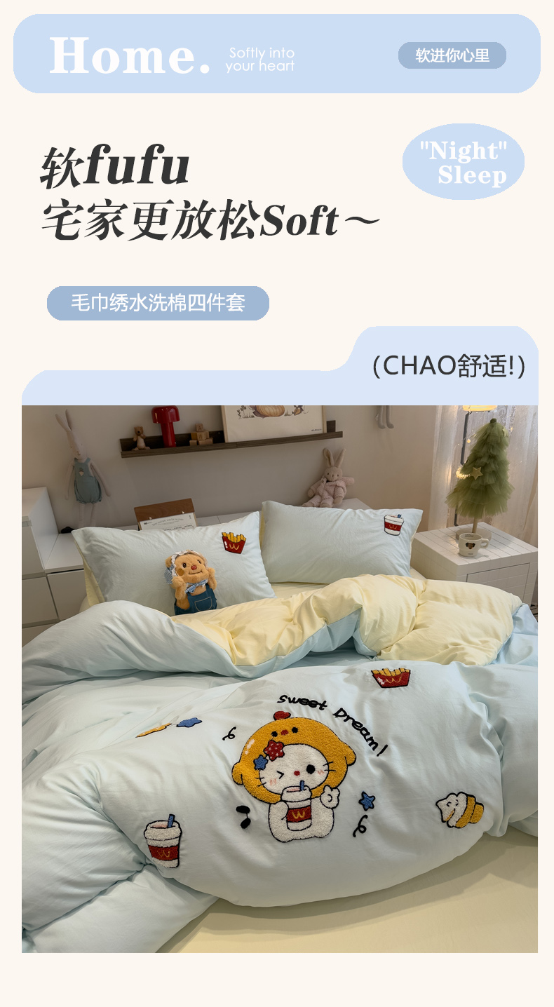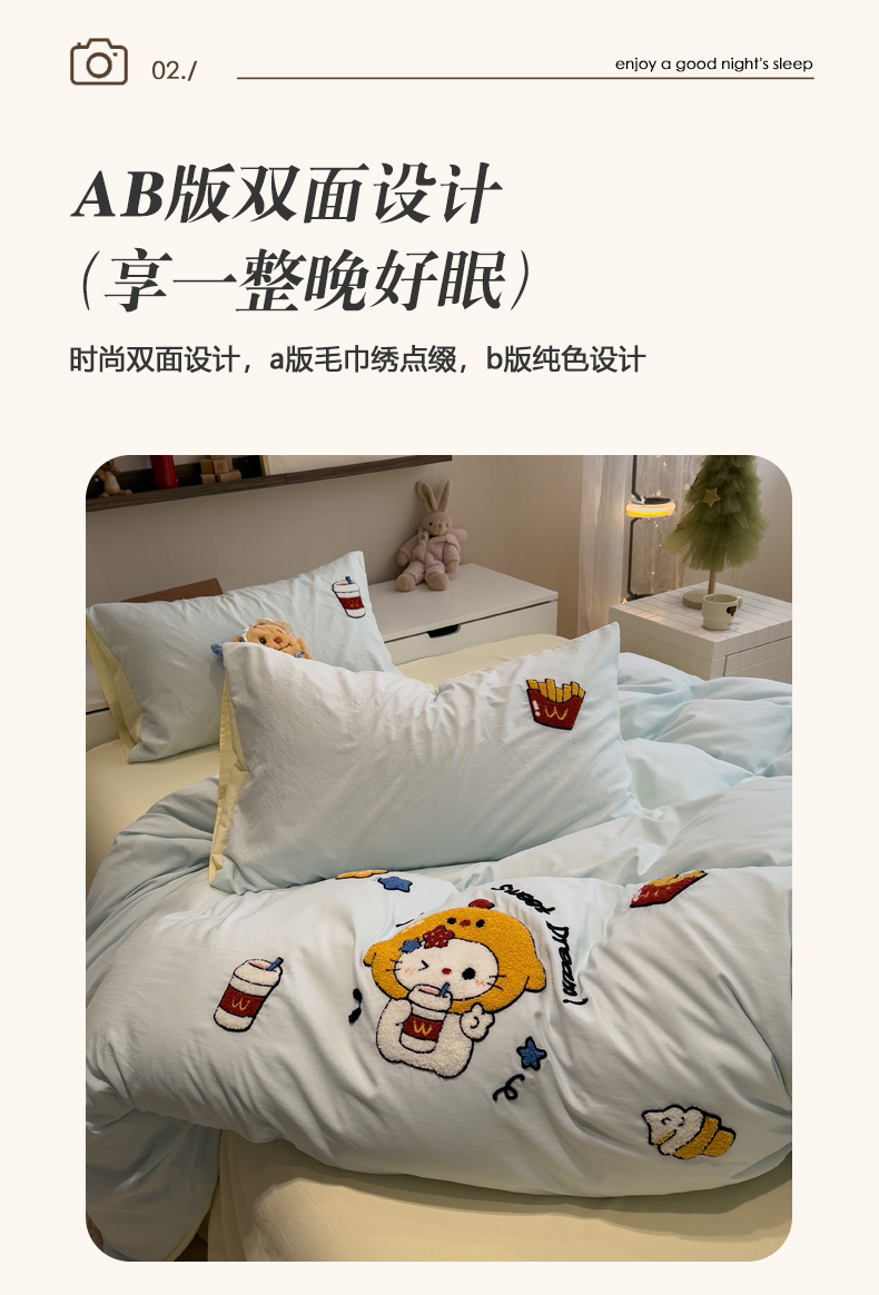 当前位置: 91家纺网 > 商品网购 > 床品套件 > 四件套 > 毛巾绣四件套 > 曼谷家纺 2026新款卡通水洗棉毛巾绣四件套被套 可乐薯条-薄荷芝士