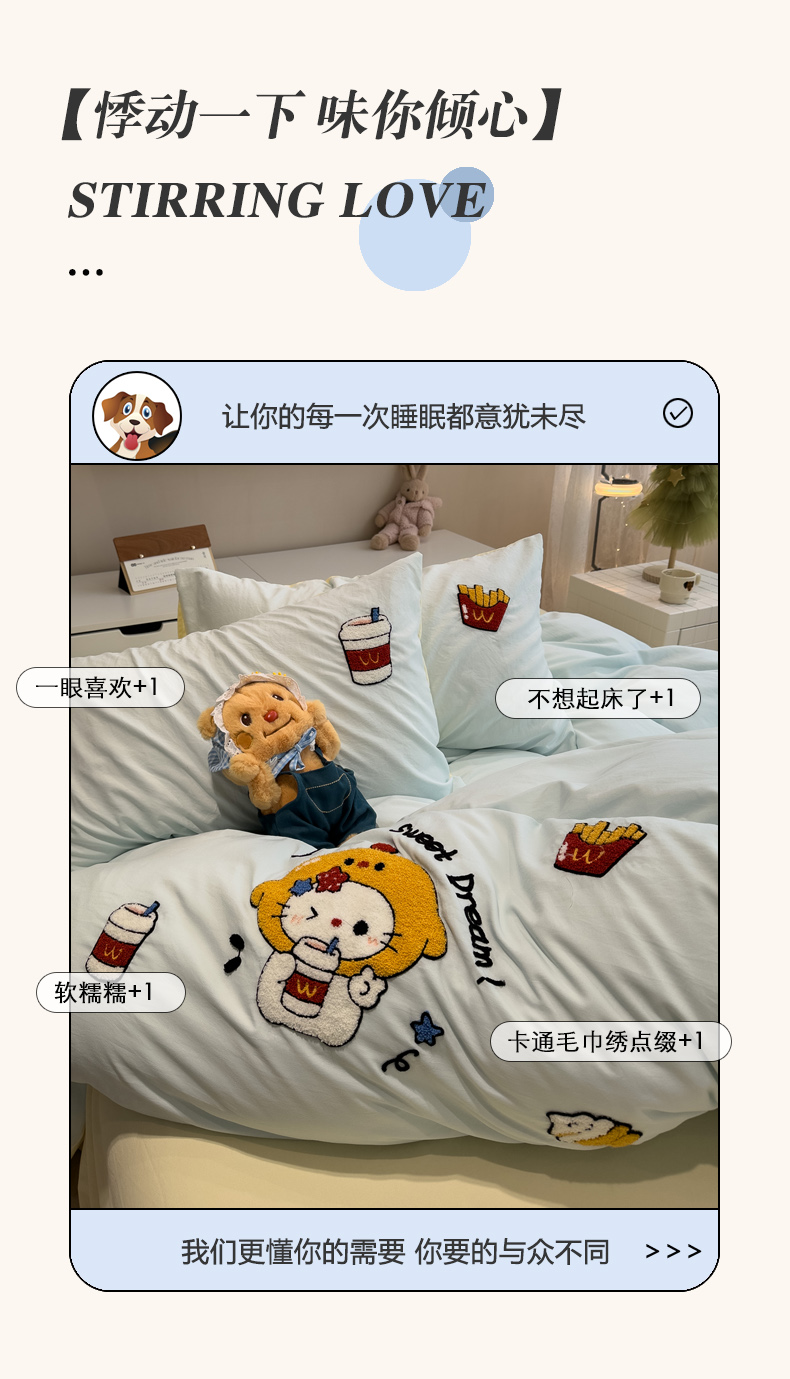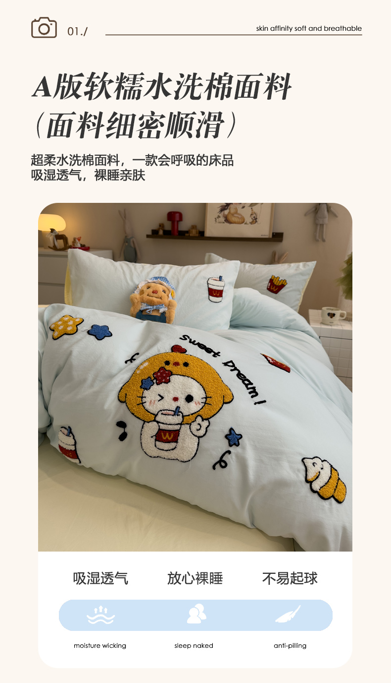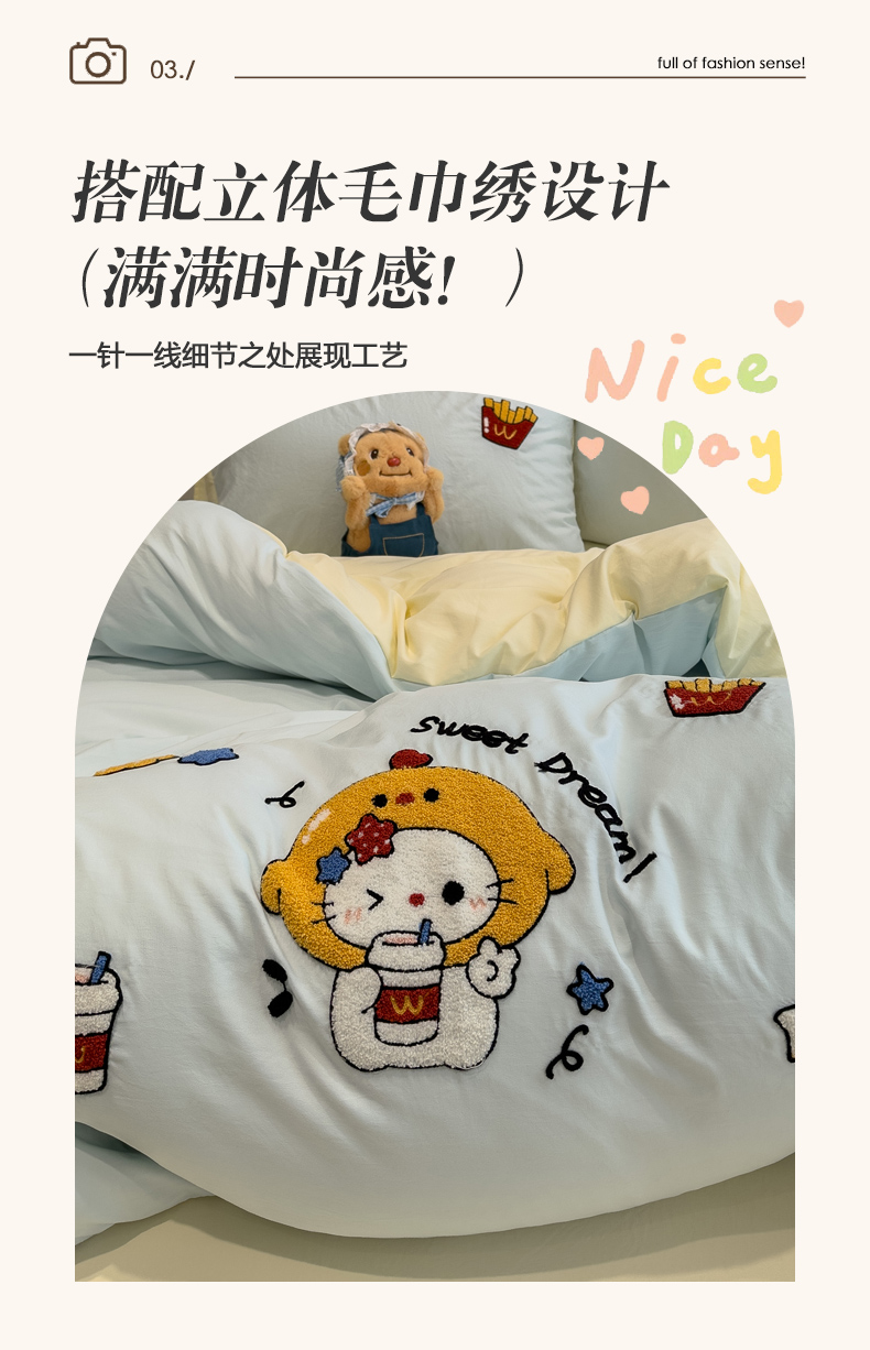 当前位置: 91家纺网 > 商品网购 > 床品套件 > 四件套 > 毛巾绣四件套 > 曼谷家纺 2026新款卡通水洗棉毛巾绣四件套被套 可乐薯条-薄荷芝士