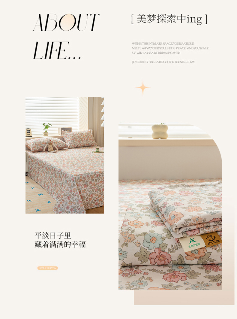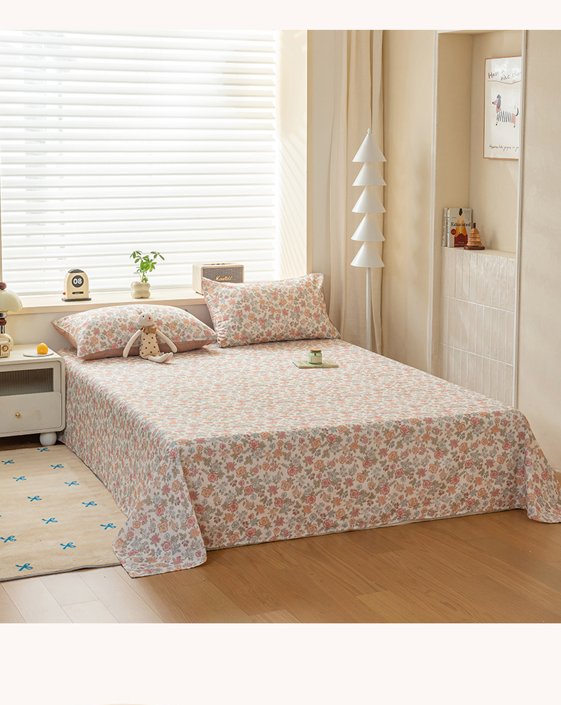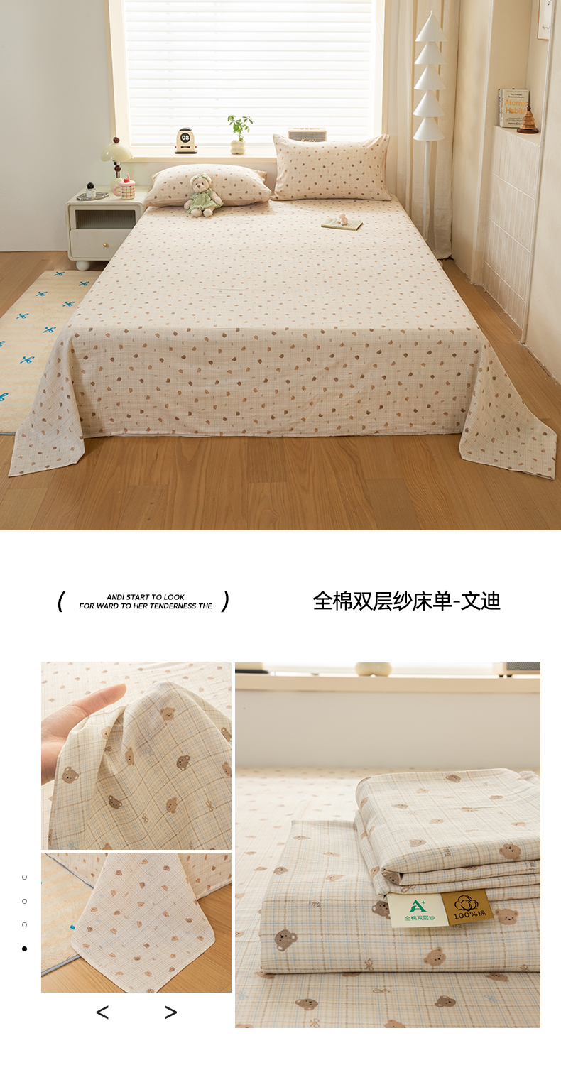 雯雨家纺 2026新款全棉有氧双层纱床单 全棉双层纱床单-香水繁花-米