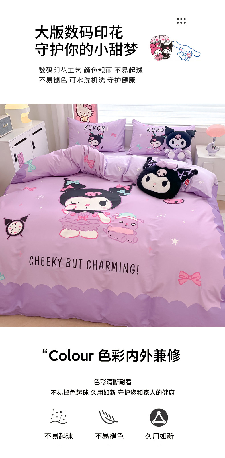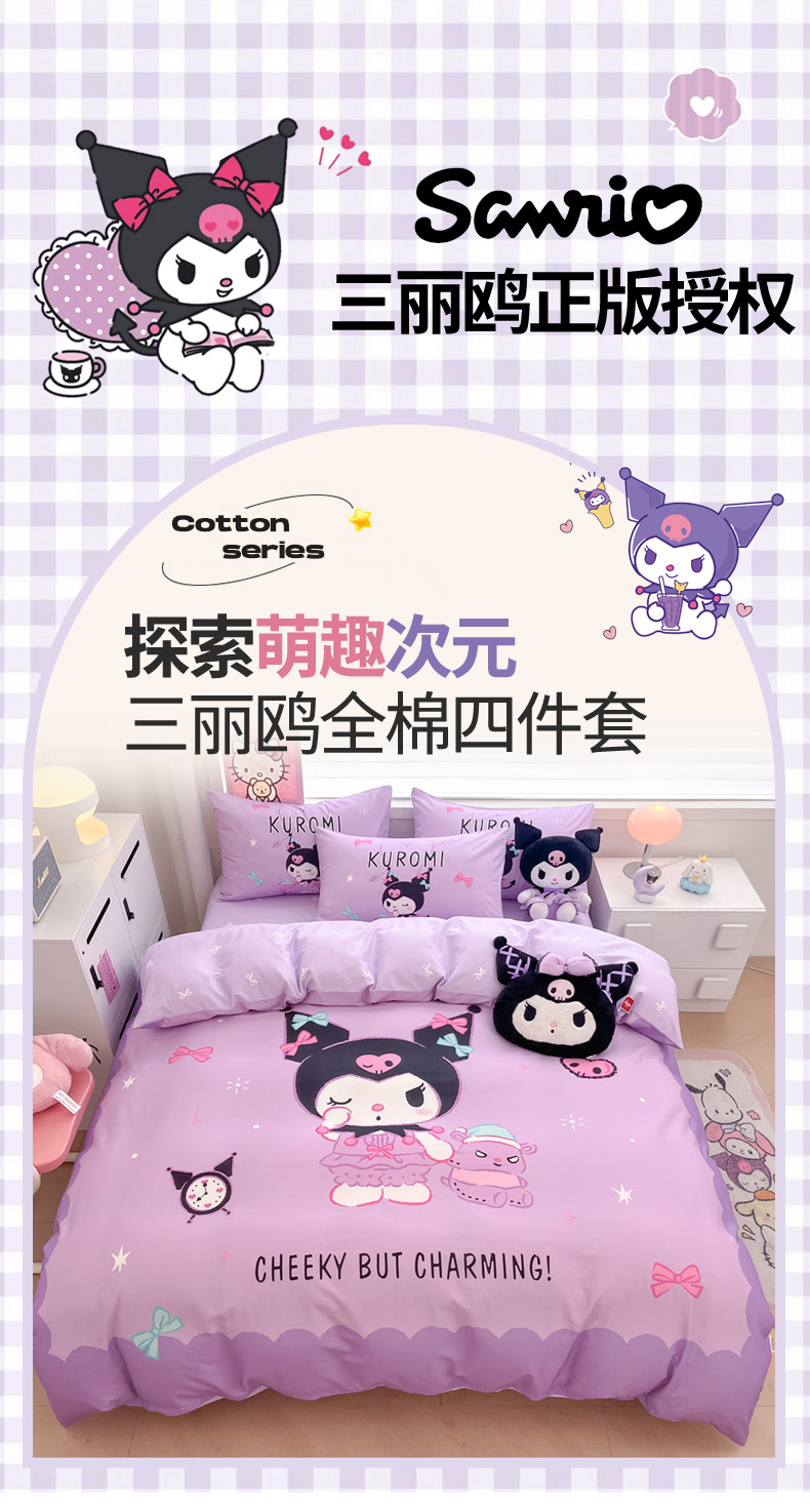 当前位置: 91家纺网 > 商品网购 > 床品套件 > 四件套 > 全棉普通四件套 > 暮思家居 2026新款正版授权三丽鸥大版全棉纯棉数码印花纯棉四件套系列-第一批 大版-魔法库洛米
