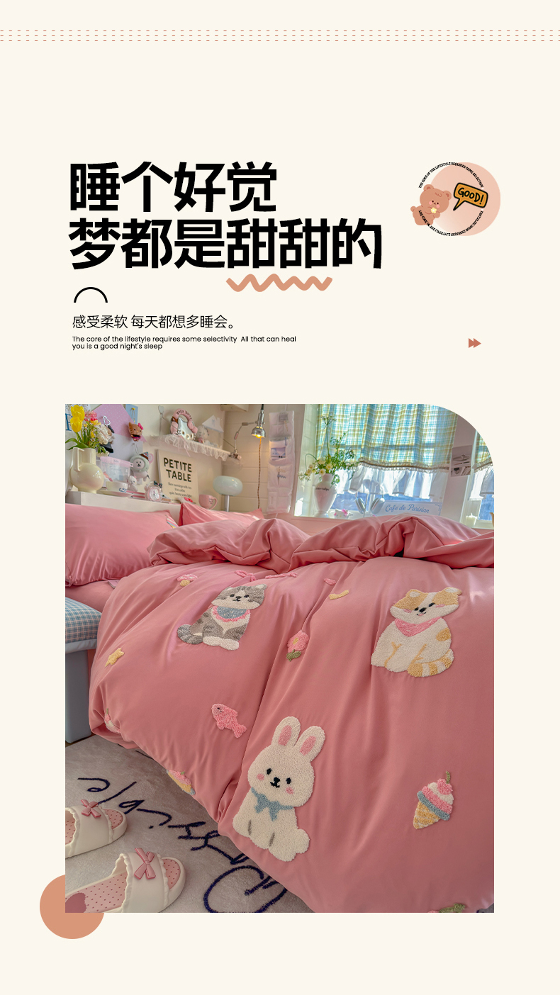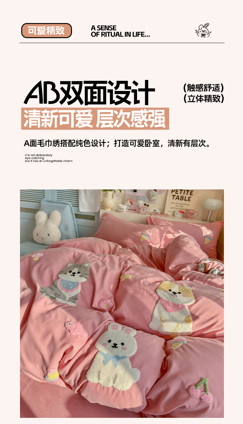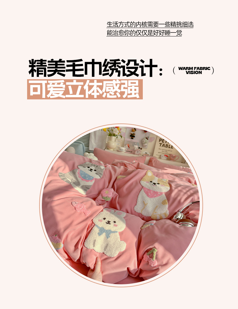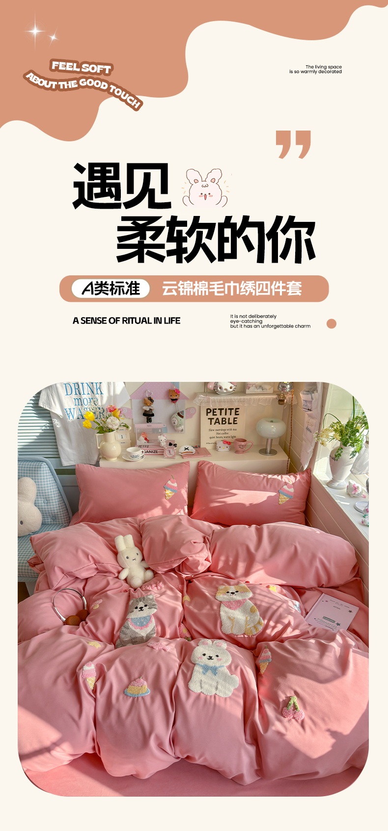 当前位置: 91家纺网 > 商品网购 > 床品套件 > 四件套 > 其它四件套 > 优卡迪家纺馆 2026新款A类云锦棉毛巾绣四件套下载文件包含买家秀 甜系萌宠-红