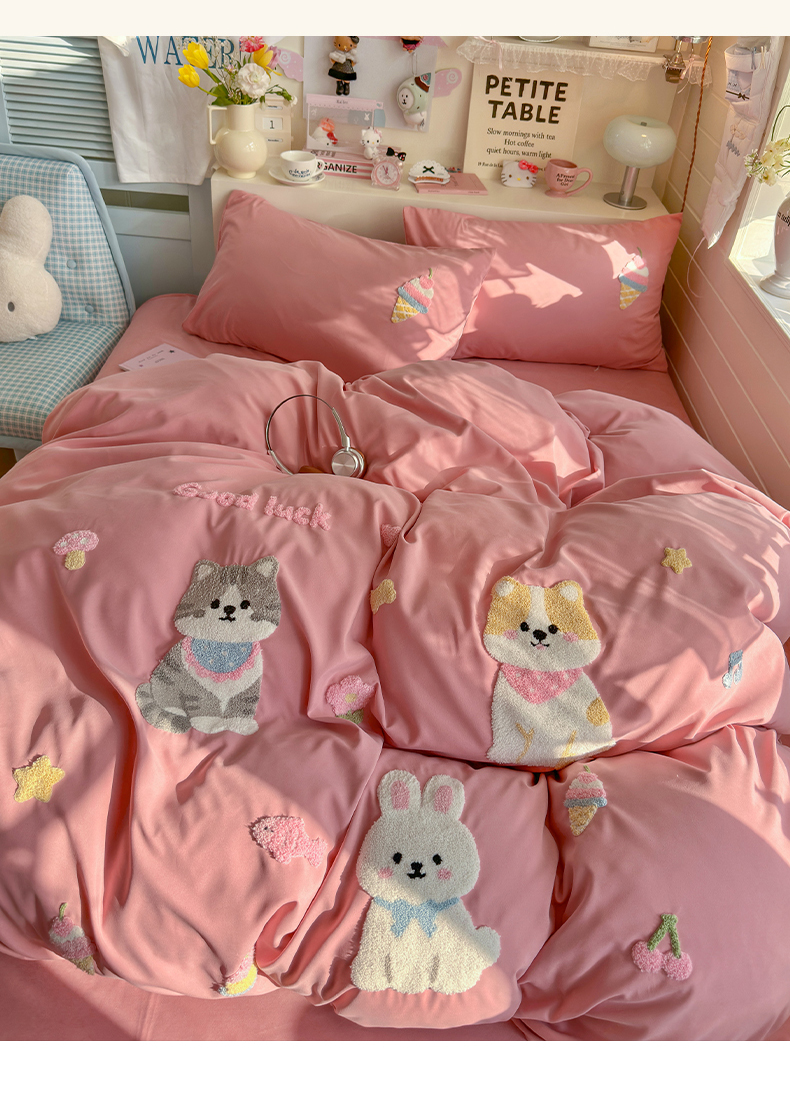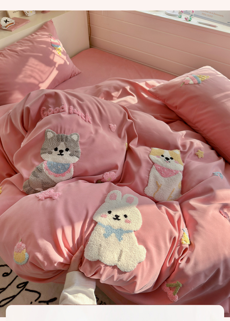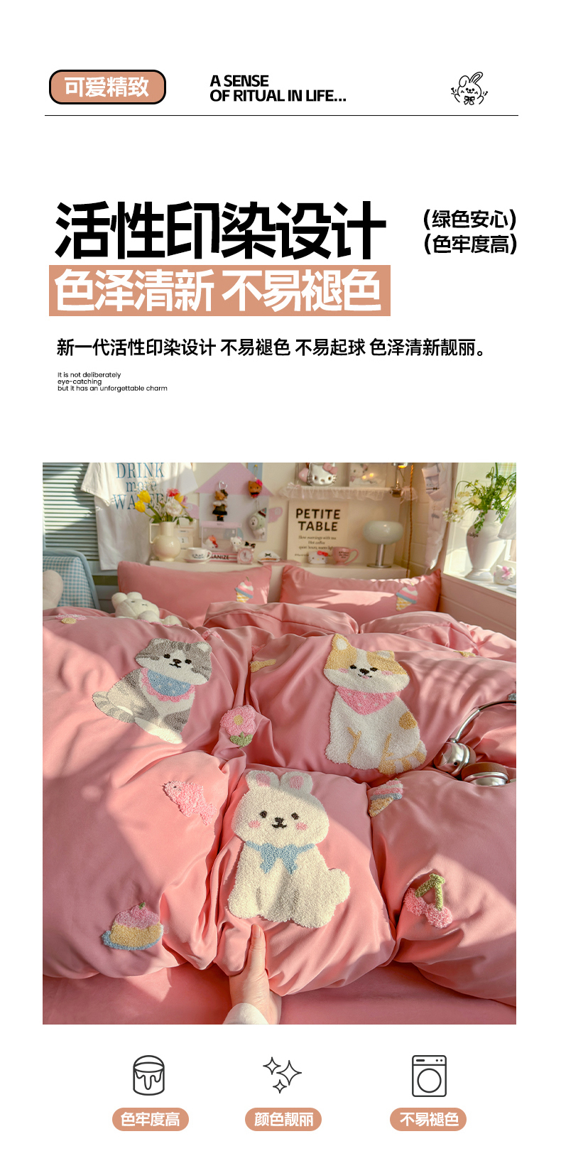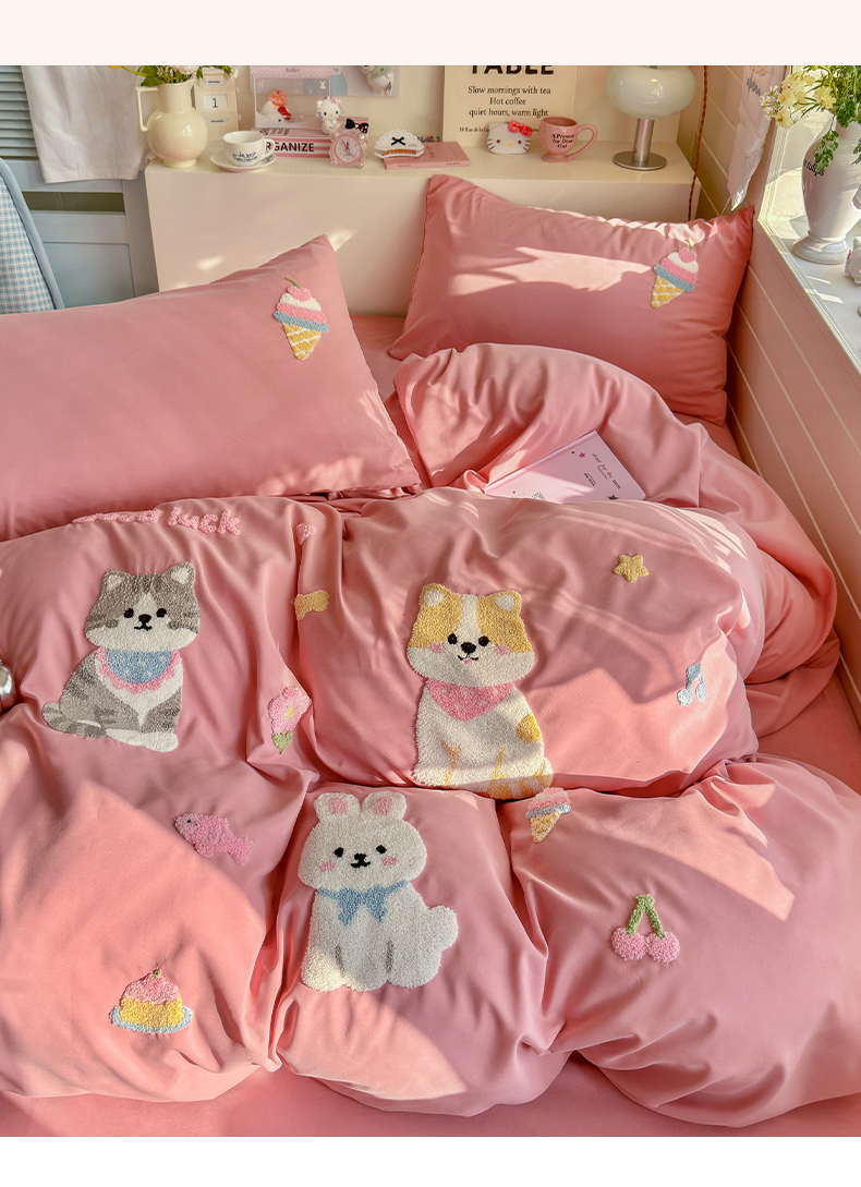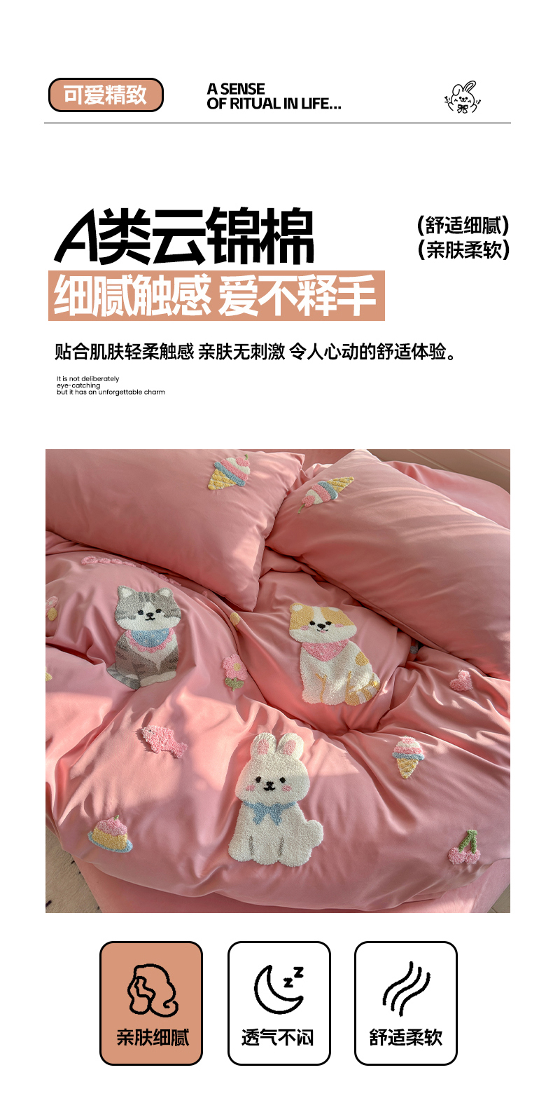 当前位置: 91家纺网 > 商品网购 > 床品套件 > 四件套 > 其它四件套 > 优卡迪家纺馆 2026新款A类云锦棉毛巾绣四件套下载文件包含买家秀 甜系萌宠-红