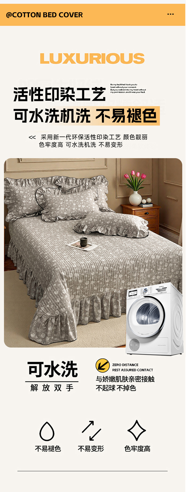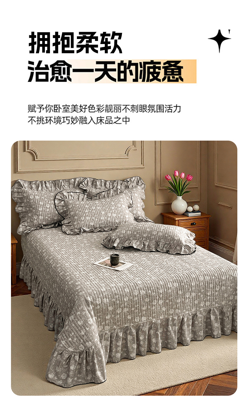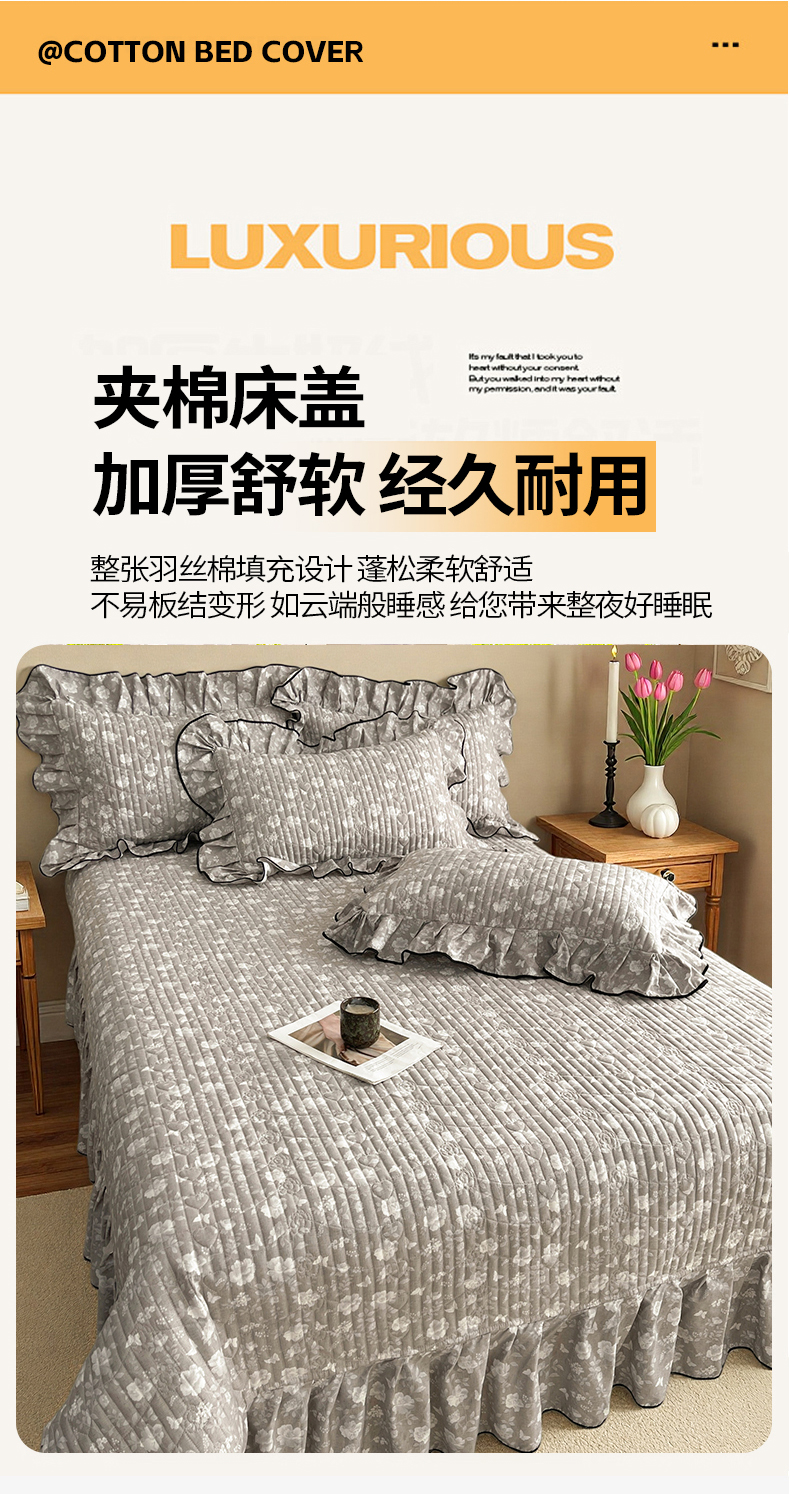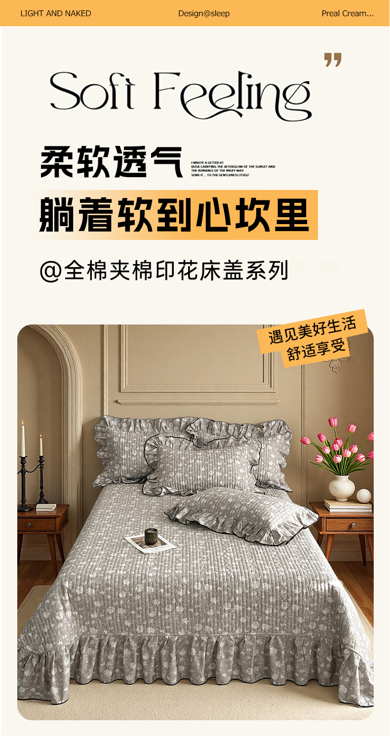 (总)宜凡家纺 2026新款全棉夹棉印花床盖款三件套,安洛特 灰,安洛特 米,安冉之夏,半岛玫瑰,繁花锦年,芳伊娜,莫里,紫藤花