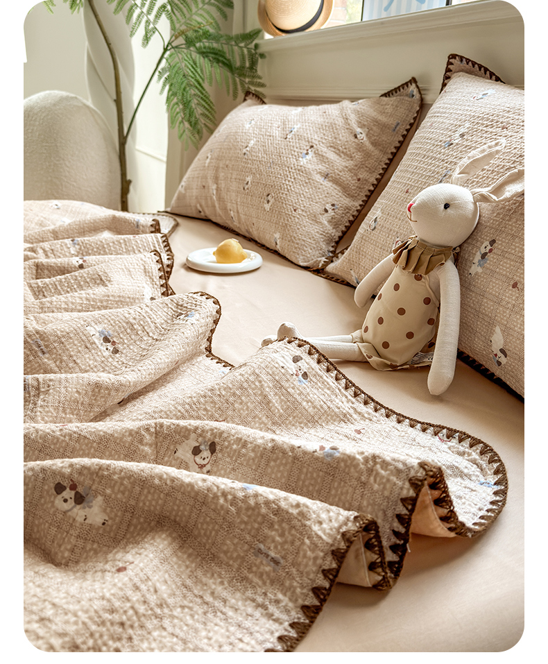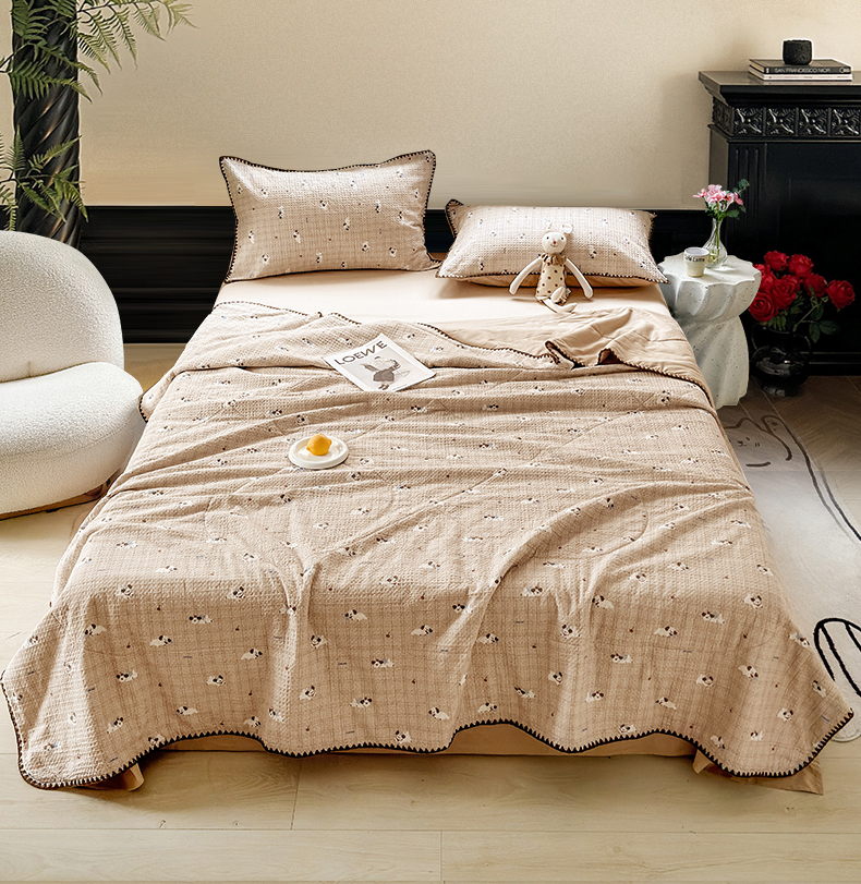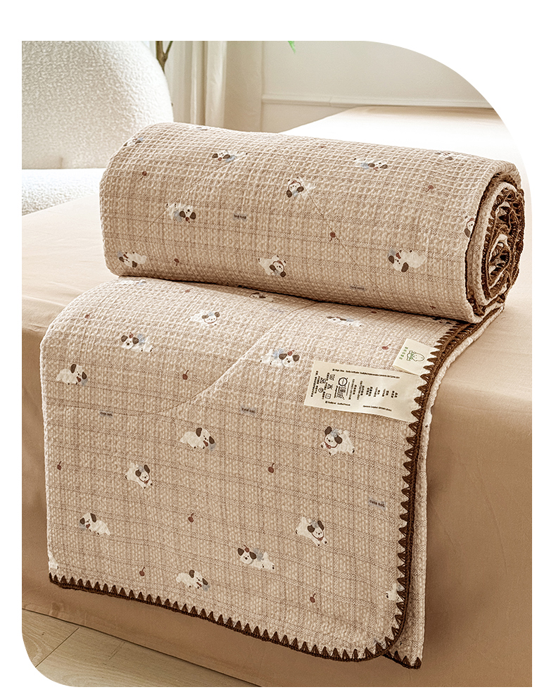 当前位置: 91家纺网 > 商品网购 > 被子 > 夏被 > 雯雨家纺 2026新款里外全棉华夫格三角针夏被 流白小狗-米