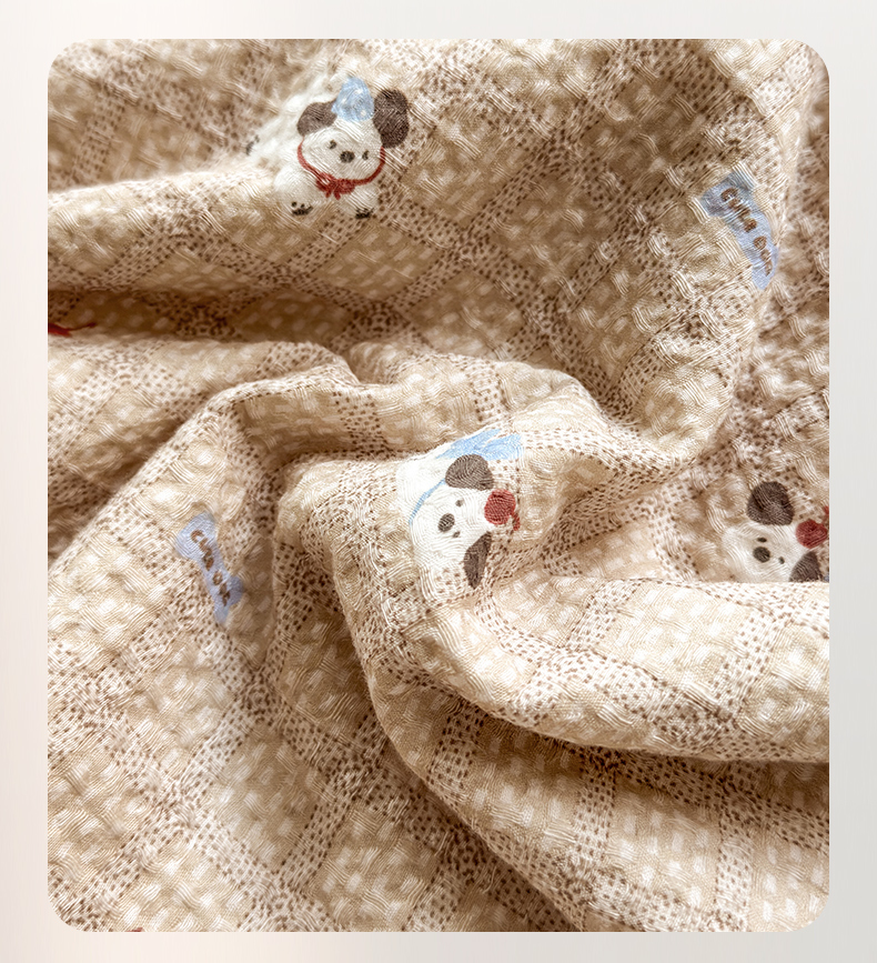 雯雨家纺 2026新款里外全棉华夫格三角针夏被 流白小狗-米