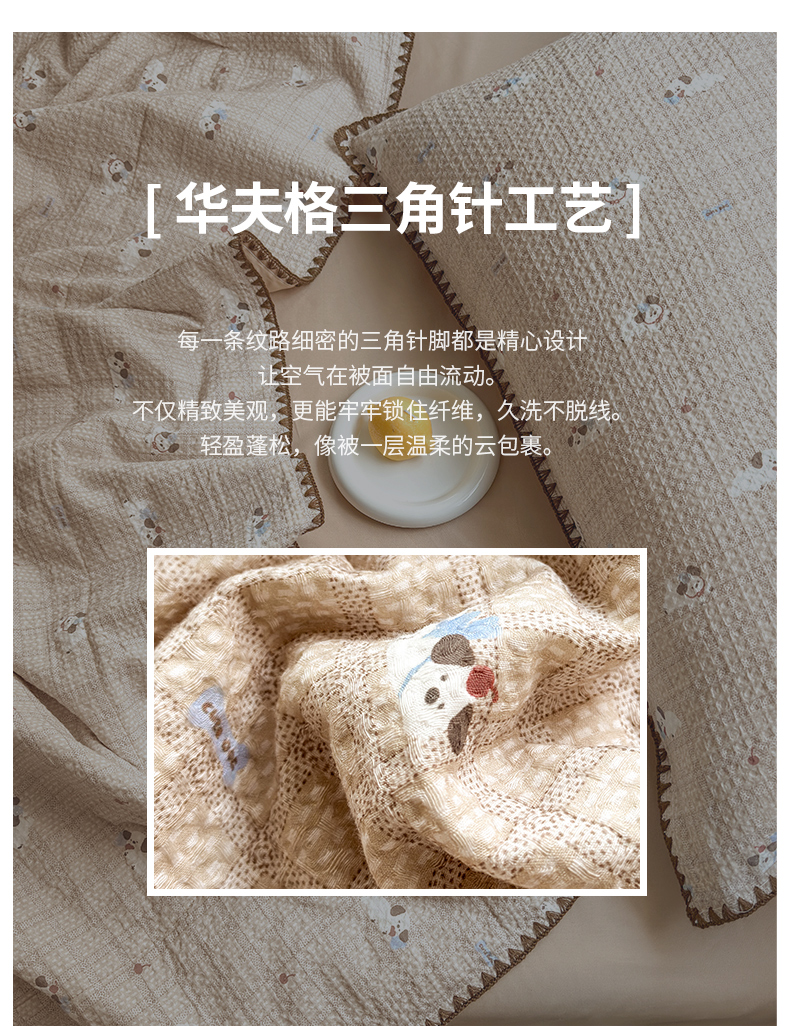 (总)雯雨家纺 2026新款里外全棉华夫格三角针夏被,简森蓝,瑞乐兰,苏潘达灰,瑞乐棕,萌动时光咖,萌动时光,欢乐派对,流白小狗-米