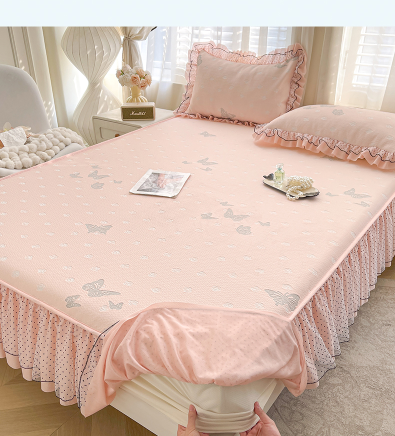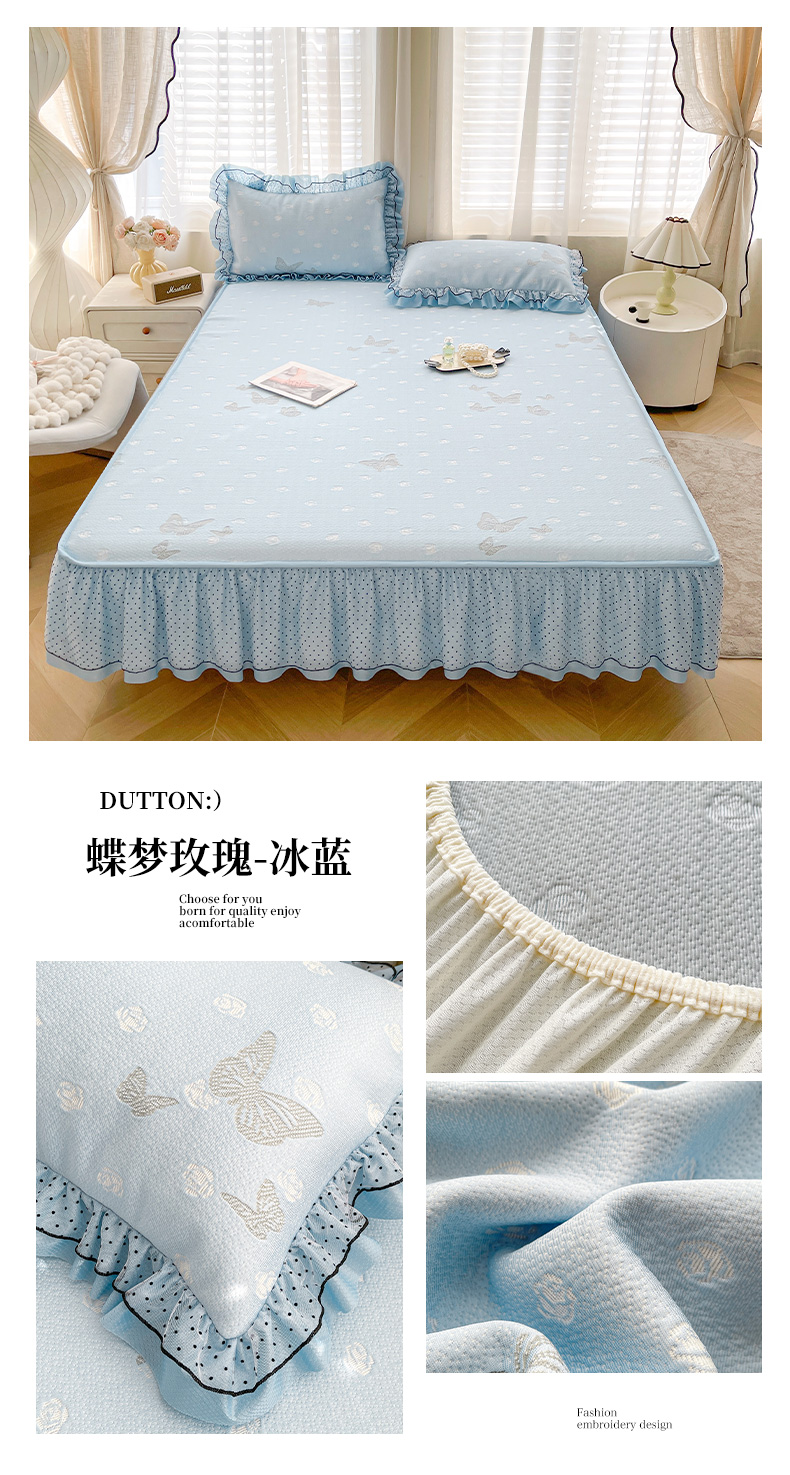 当前位置: 91家纺网 > 商品网购 > 床上用品 > 凉席 > 其他凉席 > 眠势力 2026新款冰豆豆床裙款床笠夏天冰凉豆豆空调席子带花边床裙床笠二合一 韩系小花-冰蓝
