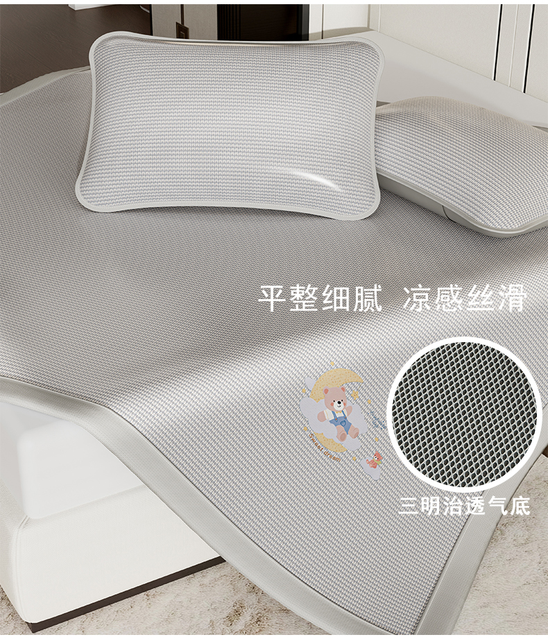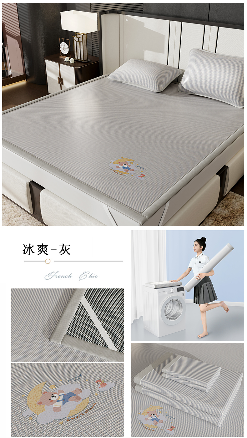 当前位置: 91家纺网 > 商品网购 > 床上用品 > 凉席 > 凉席套件 > 家品罗兰 2026新款夏季A类碳光凉席三明治透气网冰丝凉席家用双人冰丝席床单可机洗单人学生宿舍上下铺夏天空调软席三件套 冰爽-灰