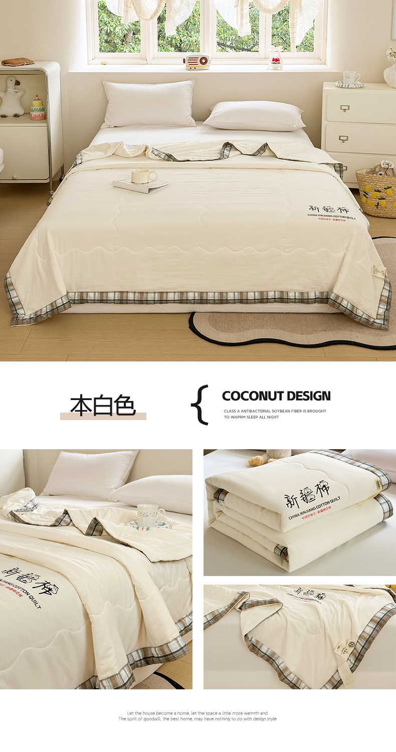 (总)蓝雀翎 2025新款立体边原棉提花工艺大豆被被子被芯,30%大豆 奶油白,30%大豆 蜜桃粉,30%大豆 绅士灰