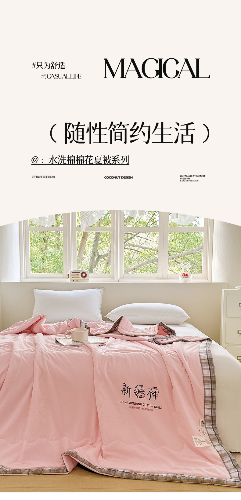 商品名称:蓝雀翎 2026新款水洗棉100%棉花夏被夏凉被空调被包检测 粉玉色