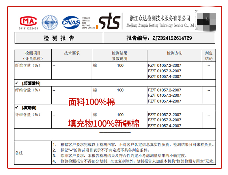 被套面料: 棉