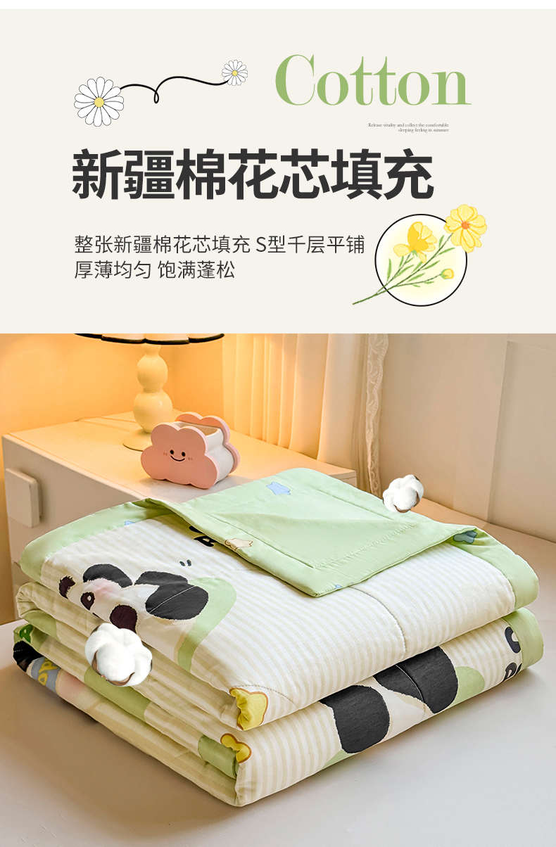 米萝家居 2026新款里外全棉夏被纯棉棉棉花夏凉被空调被 被子被芯【风格二】 小熊猫