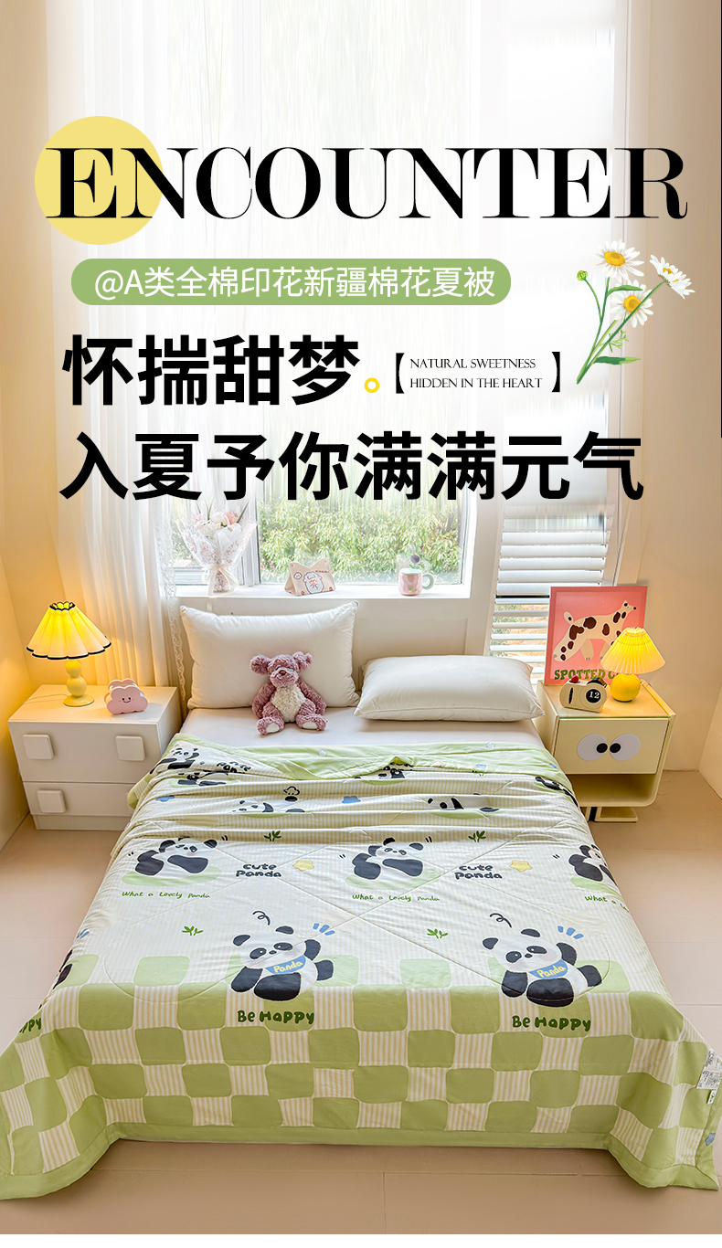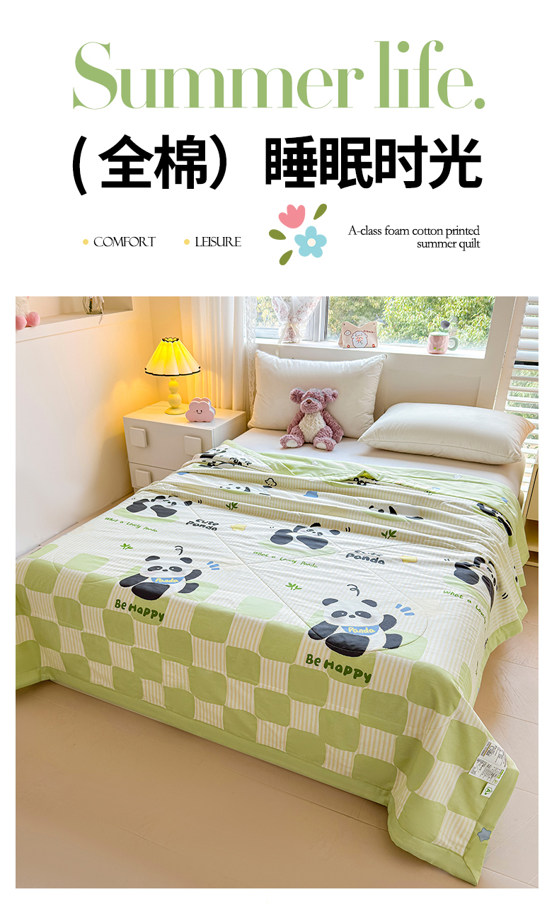 商品名称:米萝家居 2026新款里外全棉夏被纯棉棉棉花夏凉被空调被 被子被芯【风格二】 小熊猫