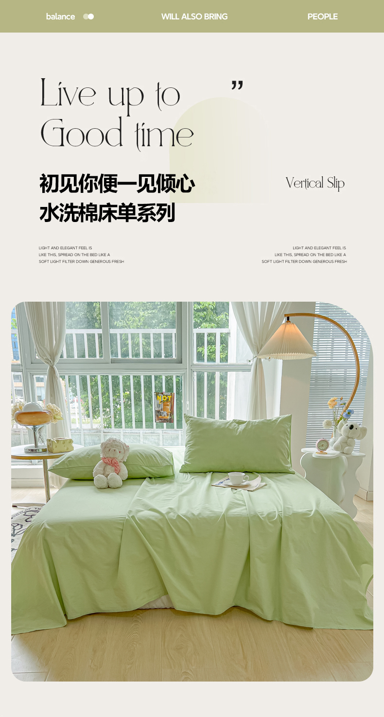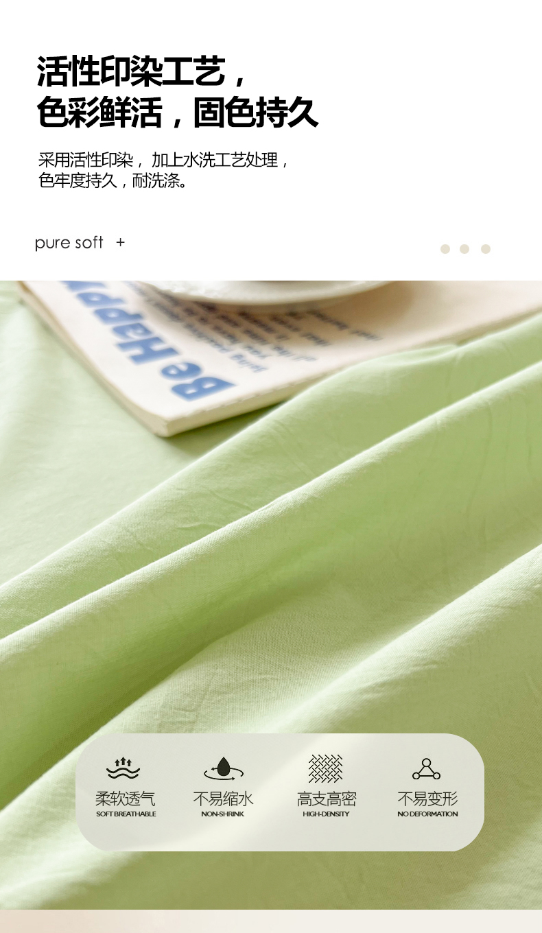 商品名称:爱彼家纺 2026新款夏季新款纯色磨毛亲肤柔软单床单床单三件套 纯色-豆绿