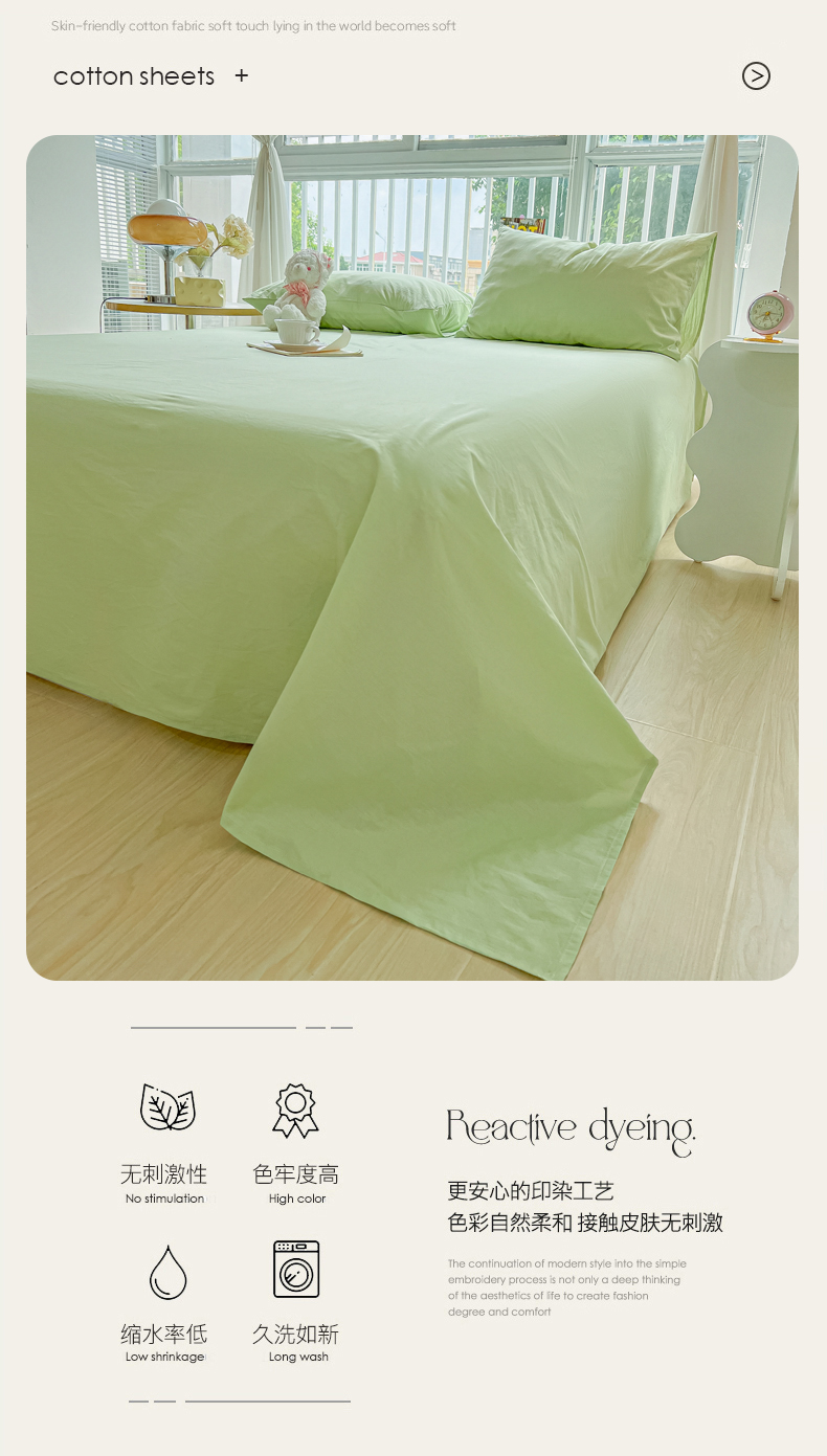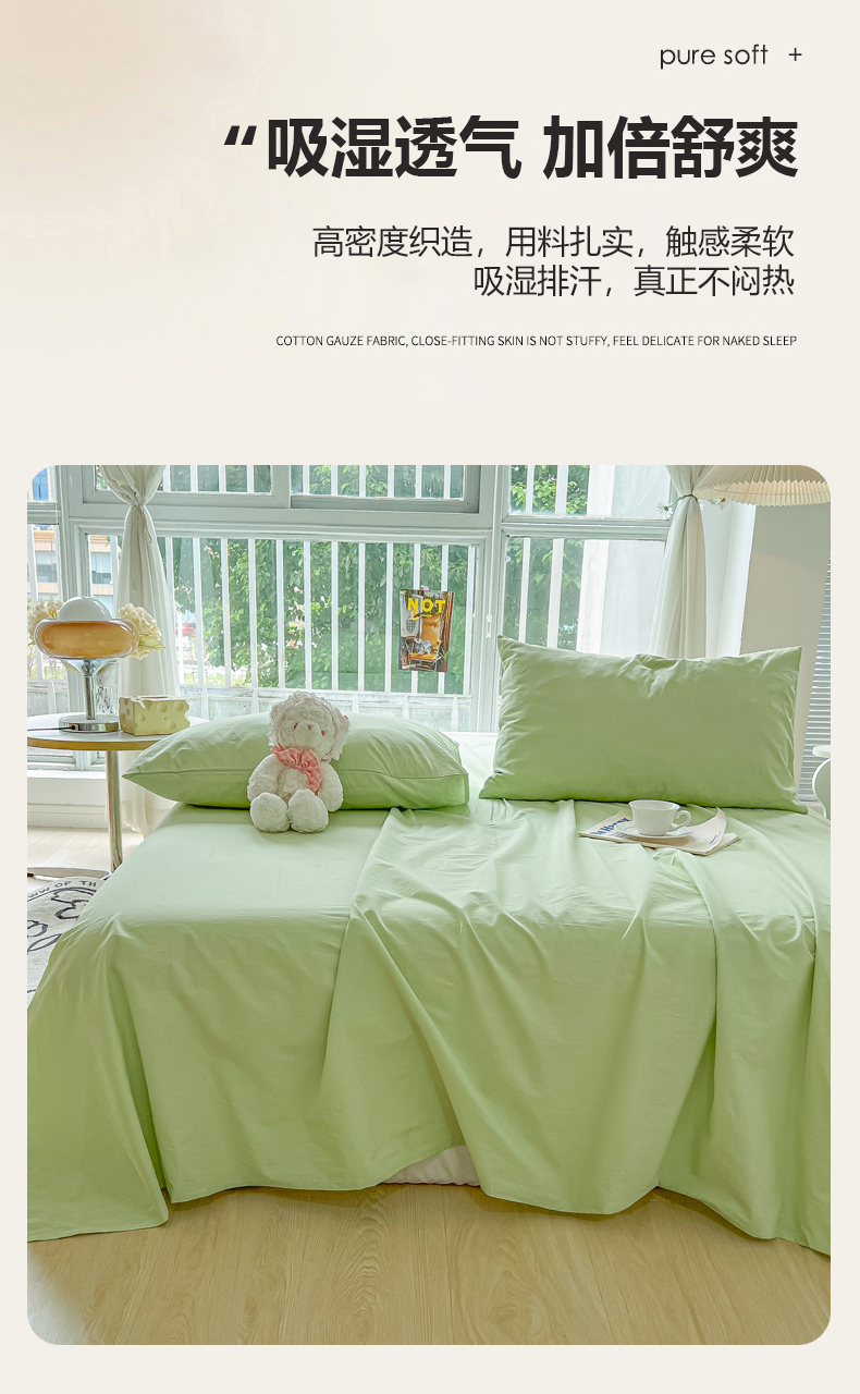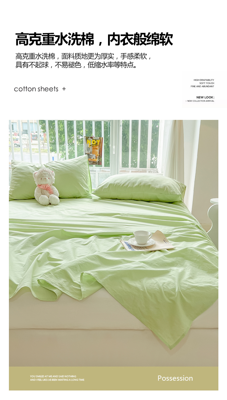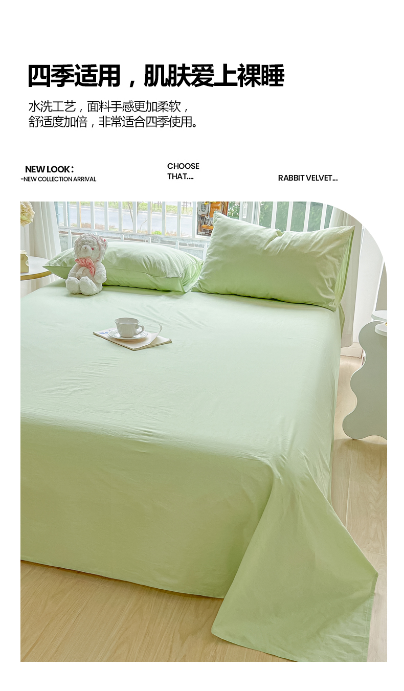 爱彼家纺 2026新款夏季新款纯色磨毛亲肤柔软单床单床单三件套 纯色-豆绿