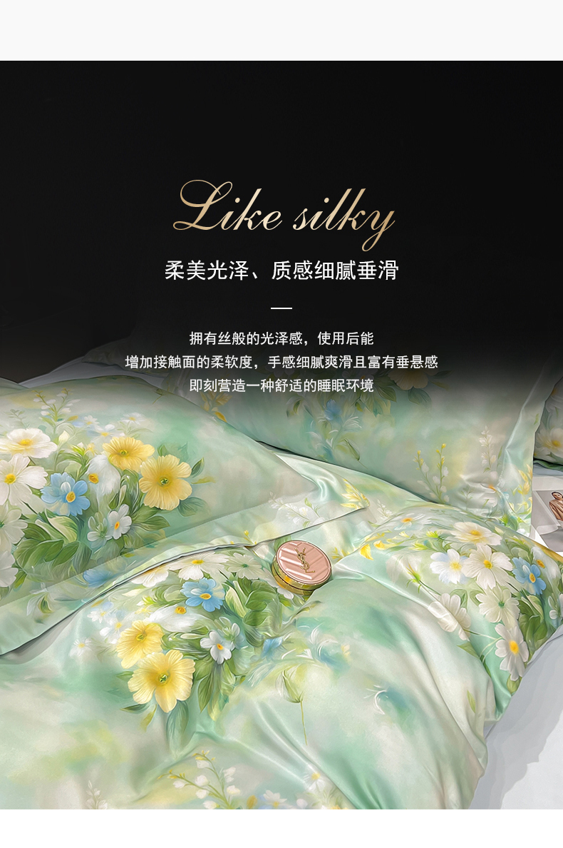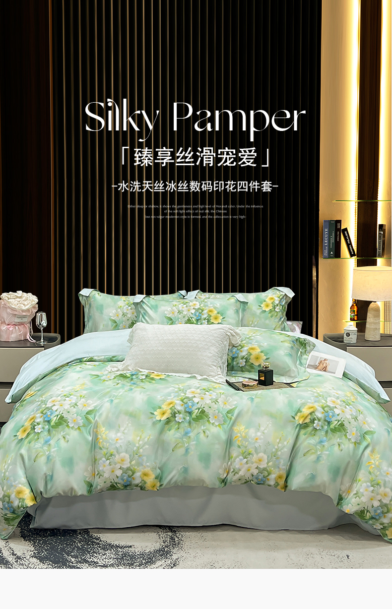 (总)优贝家纺 2026新款水洗天丝冰丝数码印花四件套,缎带花信,花涧序曲,米杏花叙,莫奈花境,青野花叙,青釉花韵