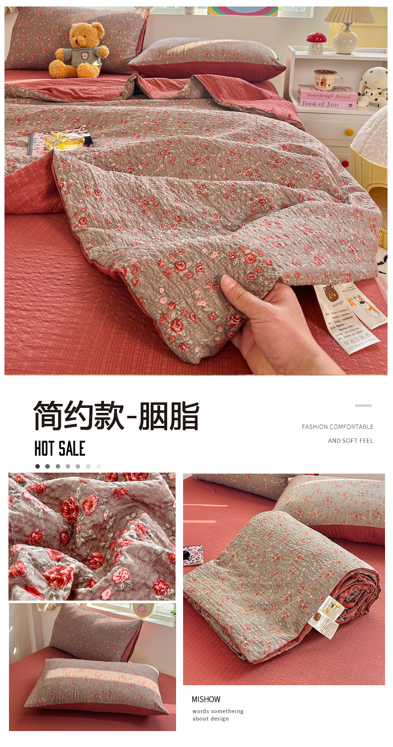 商品名称:利禾家纺 2026春夏新款泡芙纱简约夏被四件套夏凉被空调被 胭脂-简约