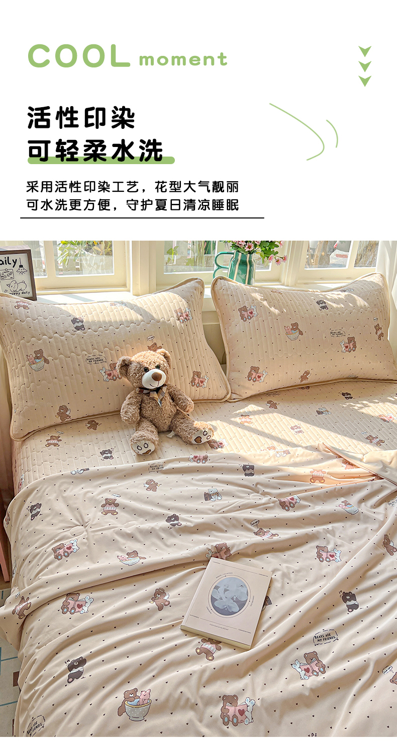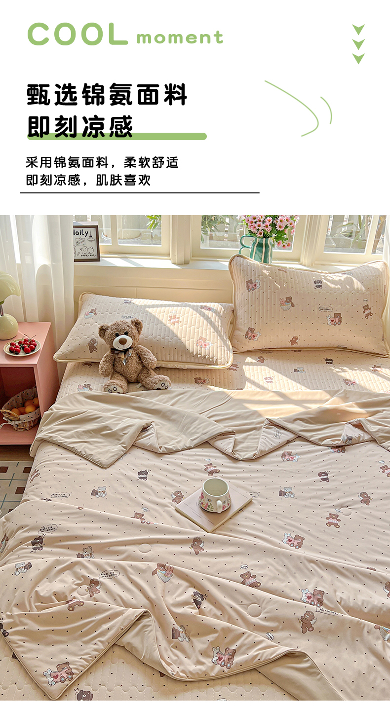 当前位置: 91家纺网 > 商品网购 > 床品套件 > 四件套 > 夏被四件套 > 卡普家居 2026新款A类锦氨凉感印花夏被床盖床单款四件套 软糖小熊