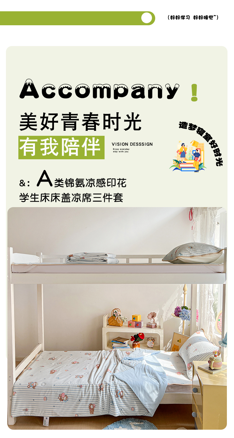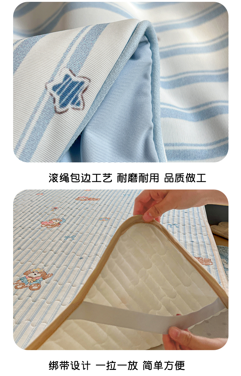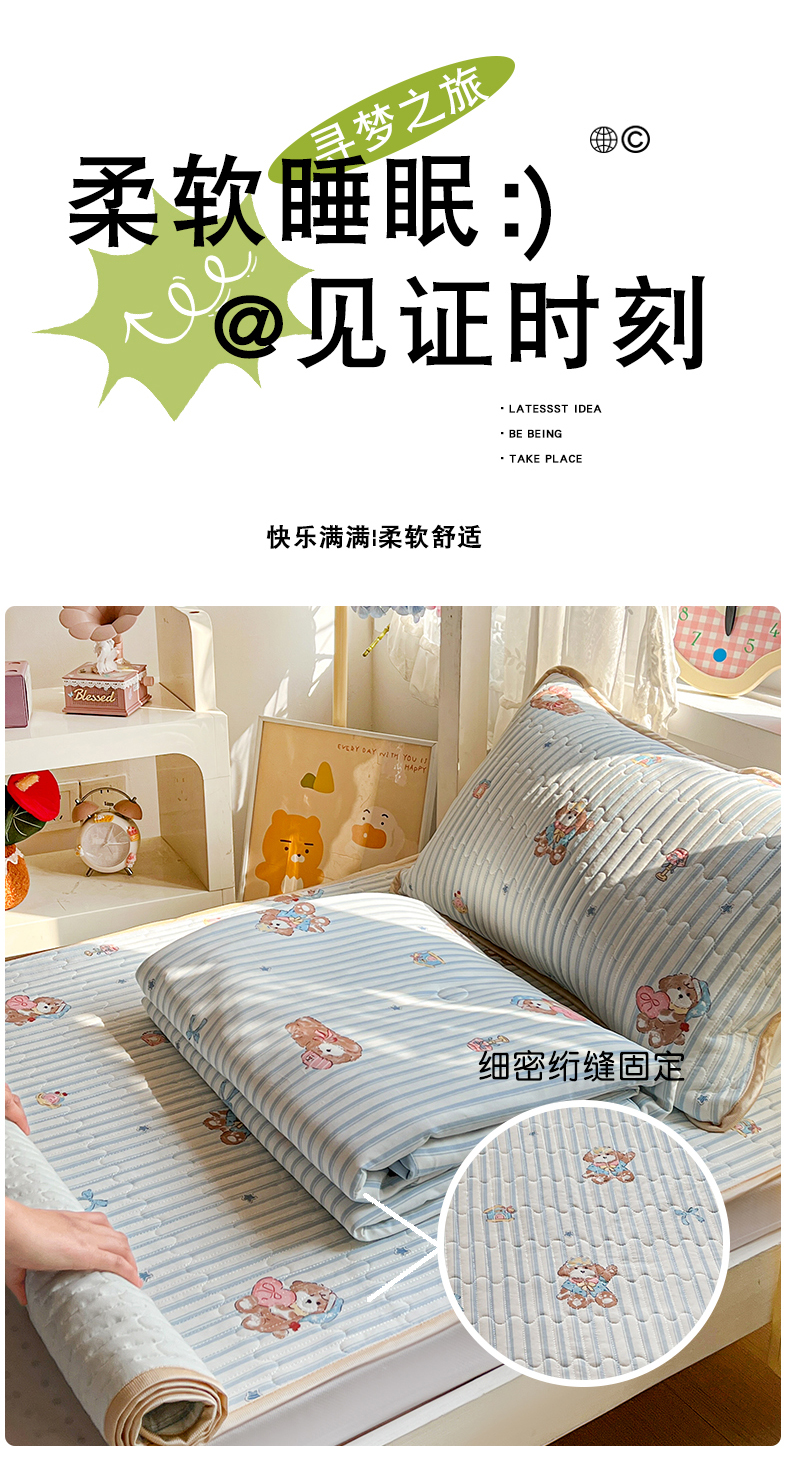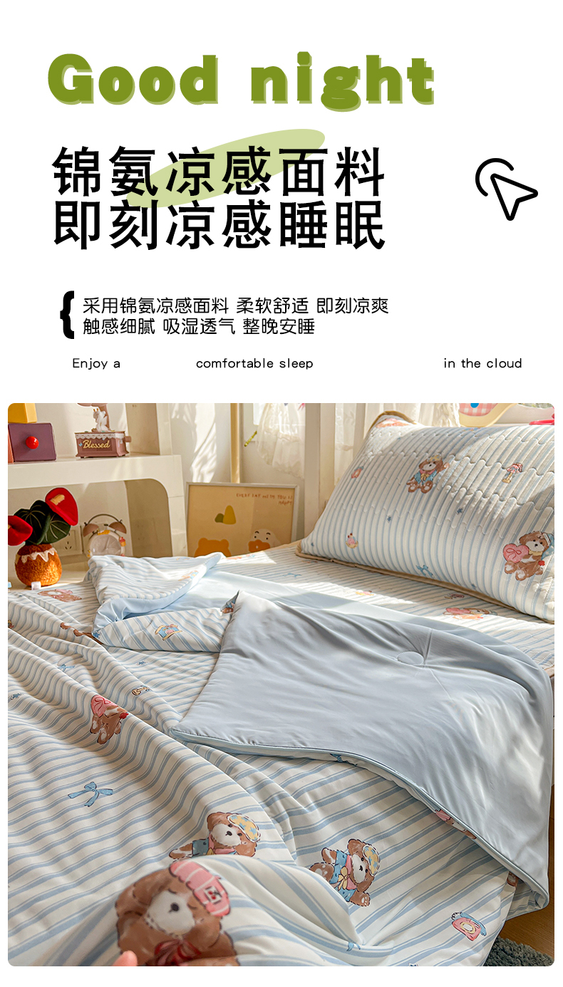 当前位置: 91家纺网 > 商品网购 > 床品套件 > 三件套 > 卡普家居 2026新款A类锦氨凉感印花夏被床盖床单款三件套 条纹熊