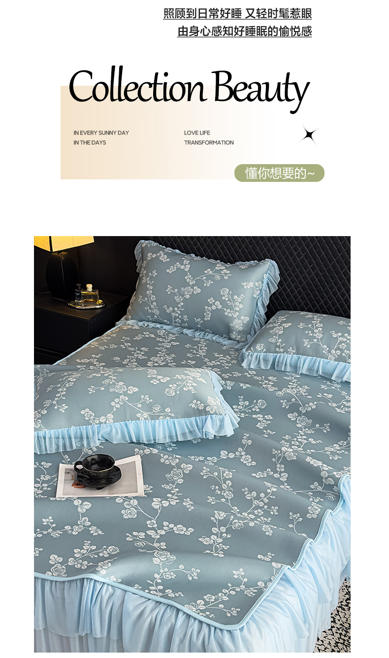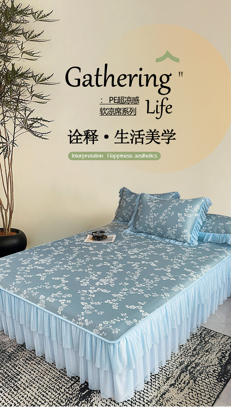• 91家纺网 家纺一手货源 找家纺 (总)家之硕家纺 2026春夏新款凉感提花床裙款凉席席子,百合捧花--粉,百合捧花--浅灰,百合捧花--深蓝,百合捧花--天蓝,蔷薇玫瑰--绿,蔷薇玫瑰--深灰,蔷薇玫瑰--深蓝,蔷薇玫瑰--天蓝
