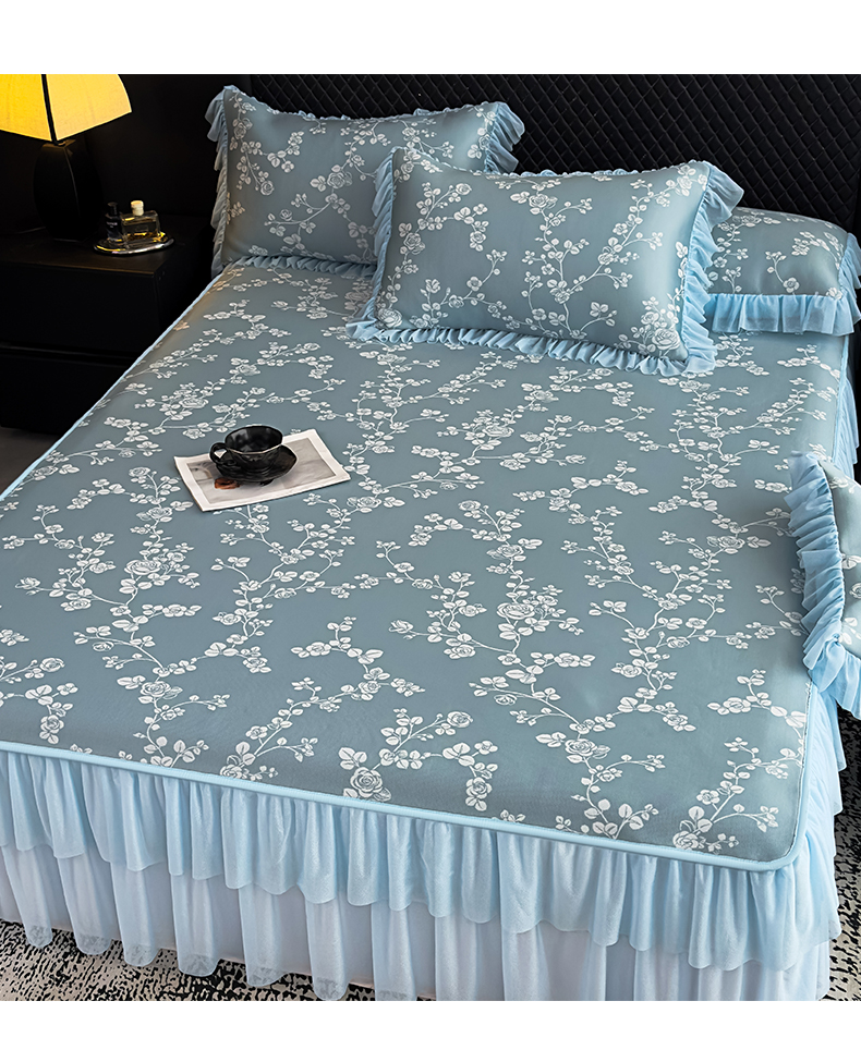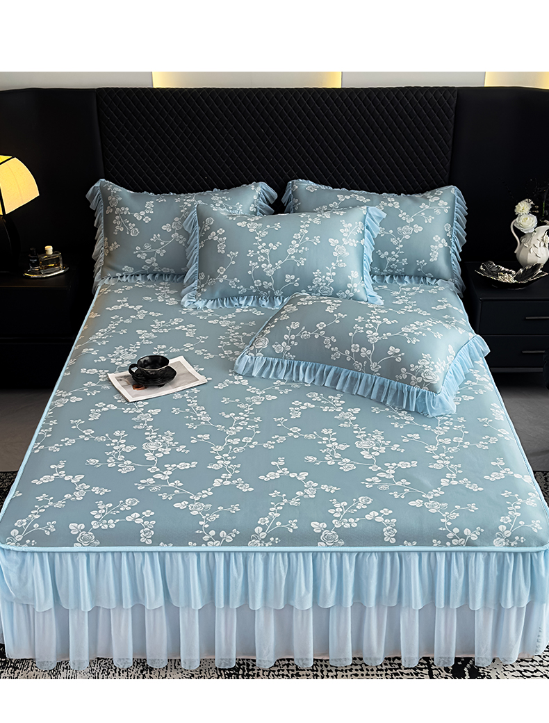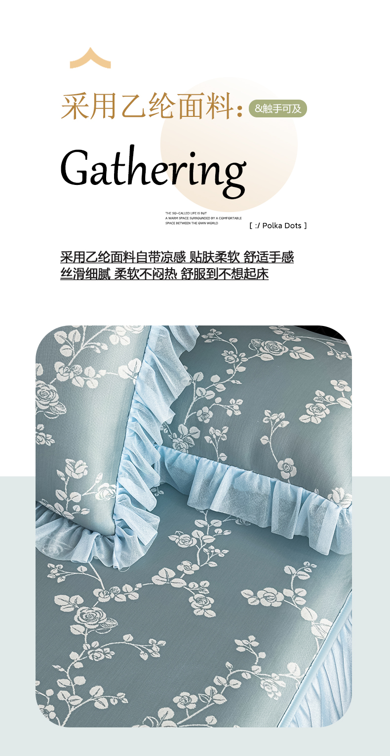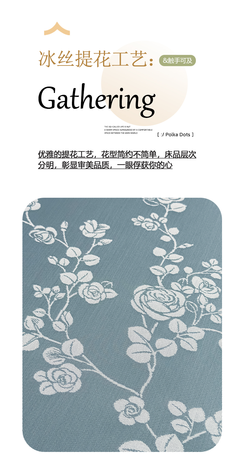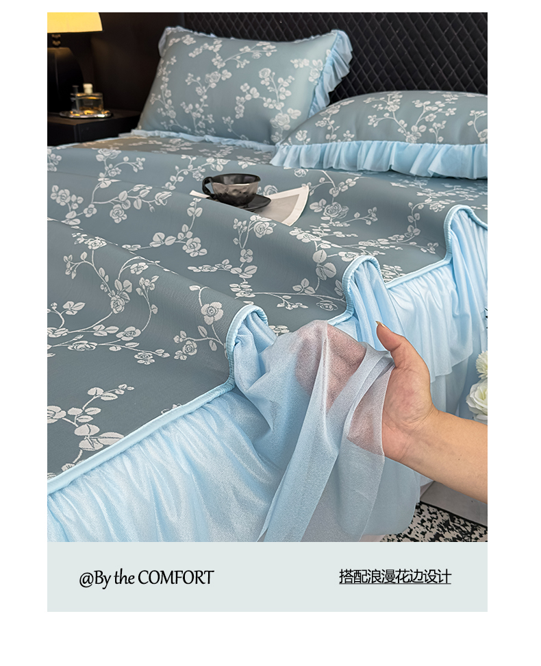 当前位置: 91家纺网 > 商品网购 > 床上用品 > 凉席 > 家之硕家纺 2026春夏新款凉感提花床裙款凉席席子 蔷薇玫瑰--深蓝