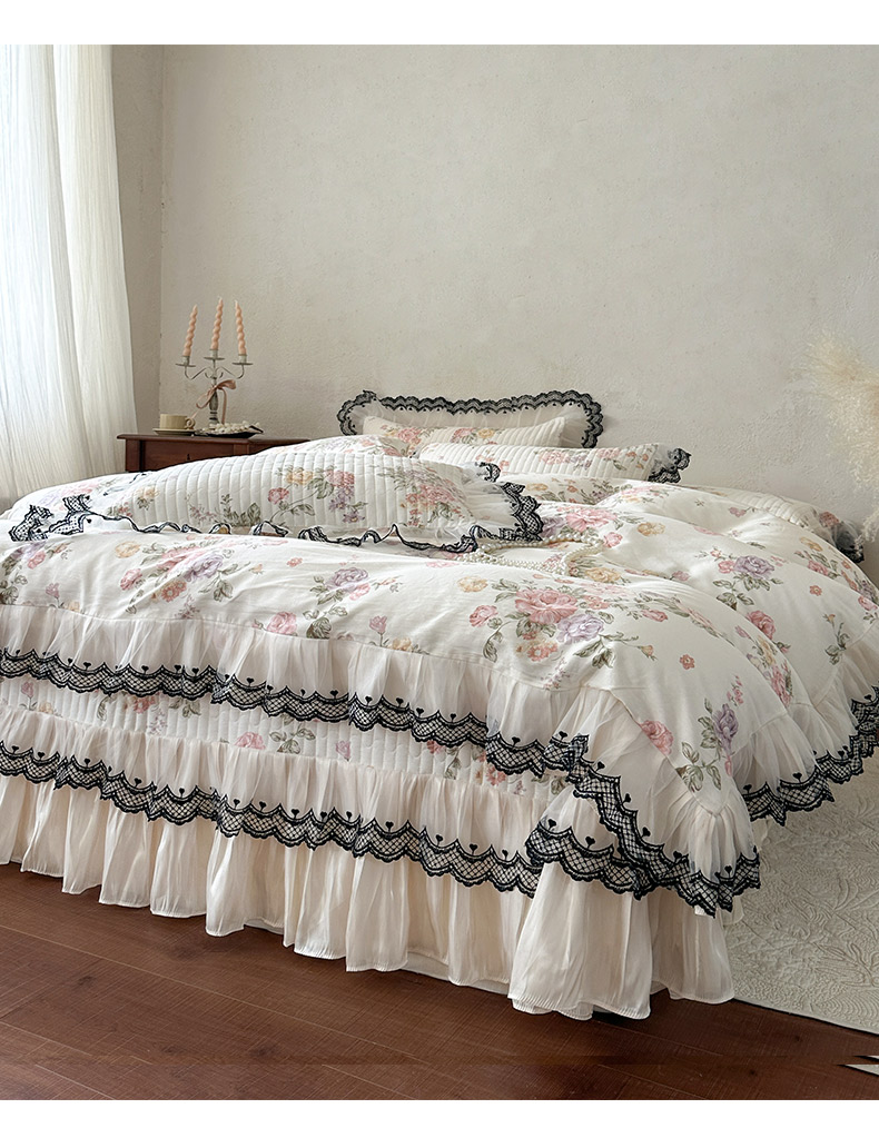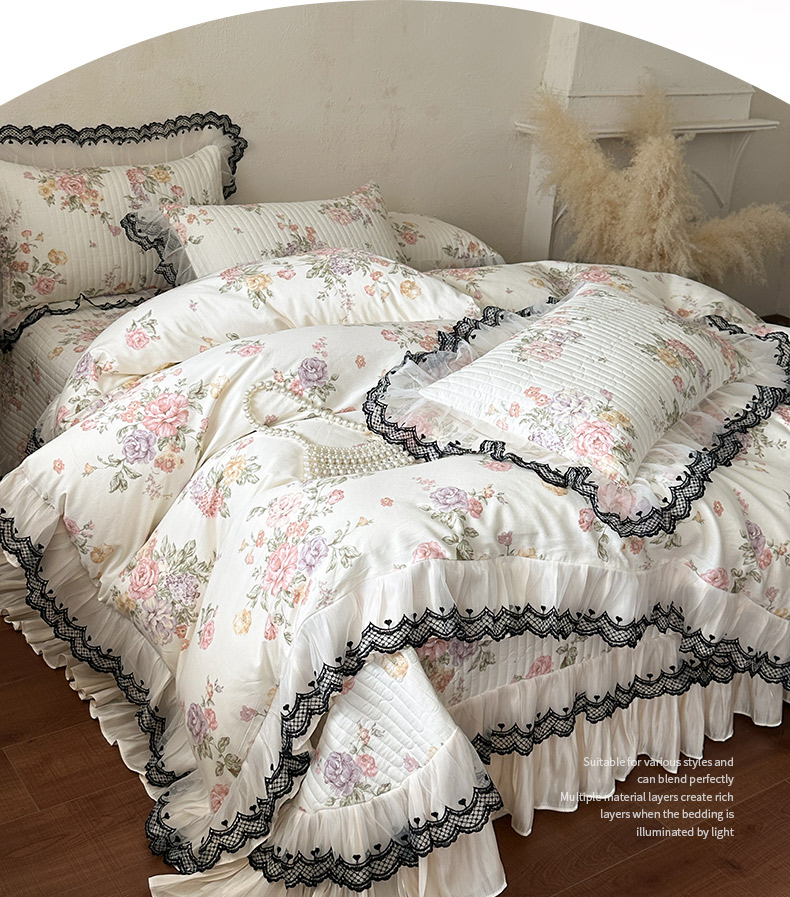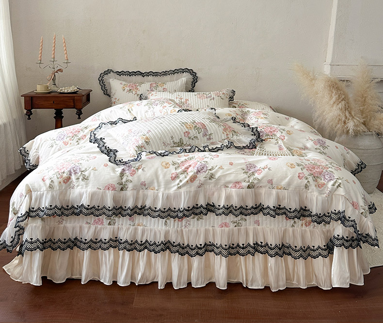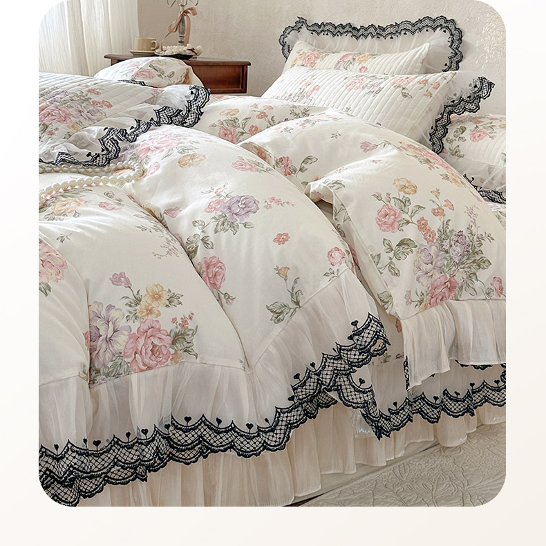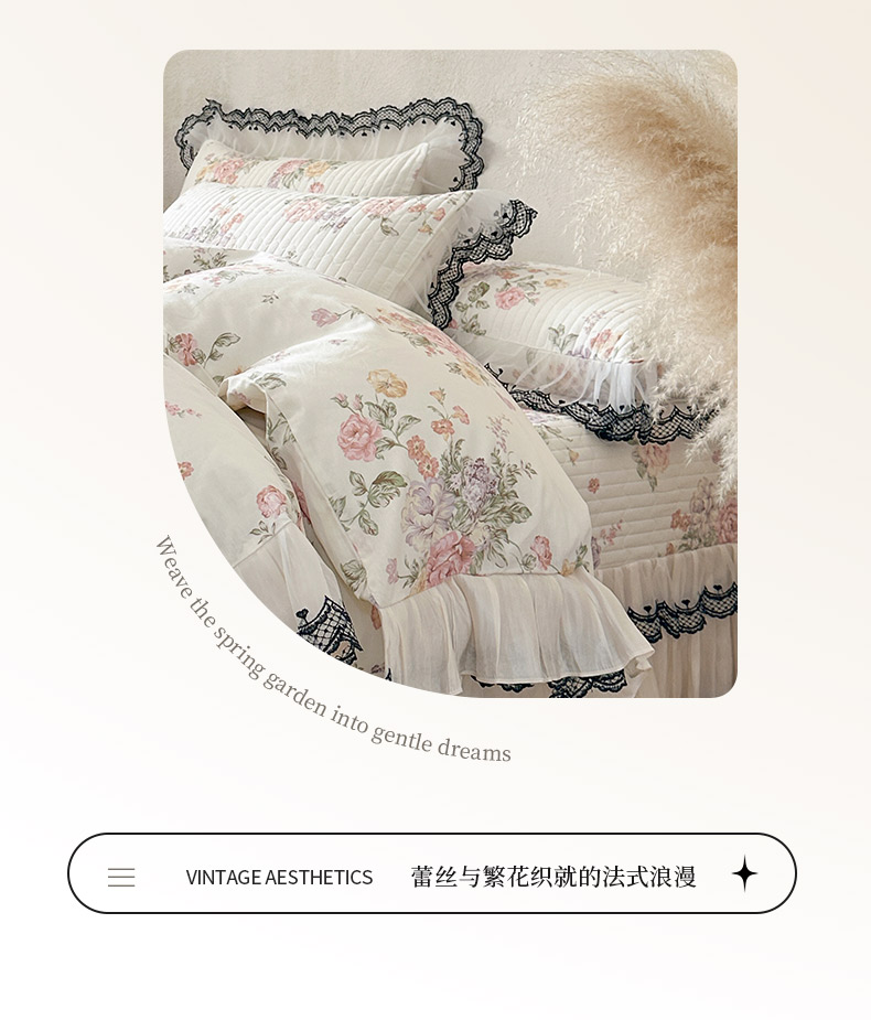 (总)恋尚 2026新款全棉纯棉蕾丝印花床笠裙四件套,芙微,花蝶语,花牺,蔓朵,浅栀,夏瑶,向朵,寻芳朵朵,荨花