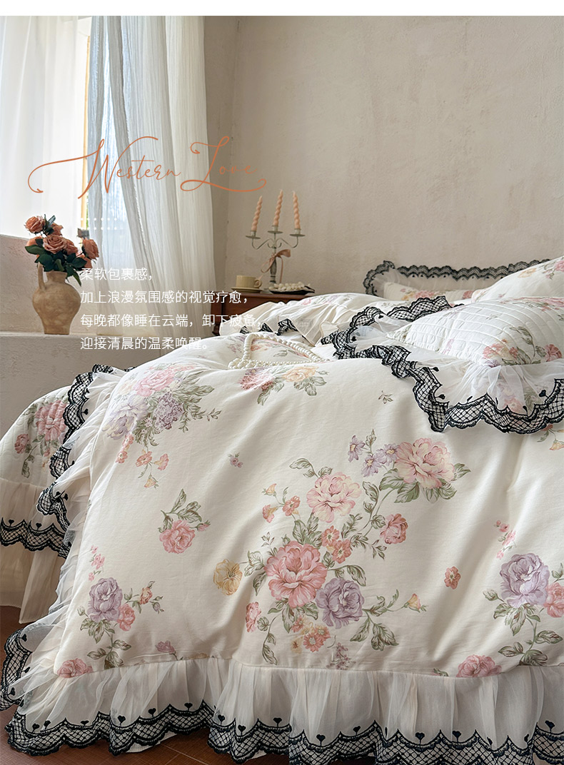 恋尚 2026春夏新款全棉纯棉印花床盖四件套 四件套控价300起 繁花香颂
