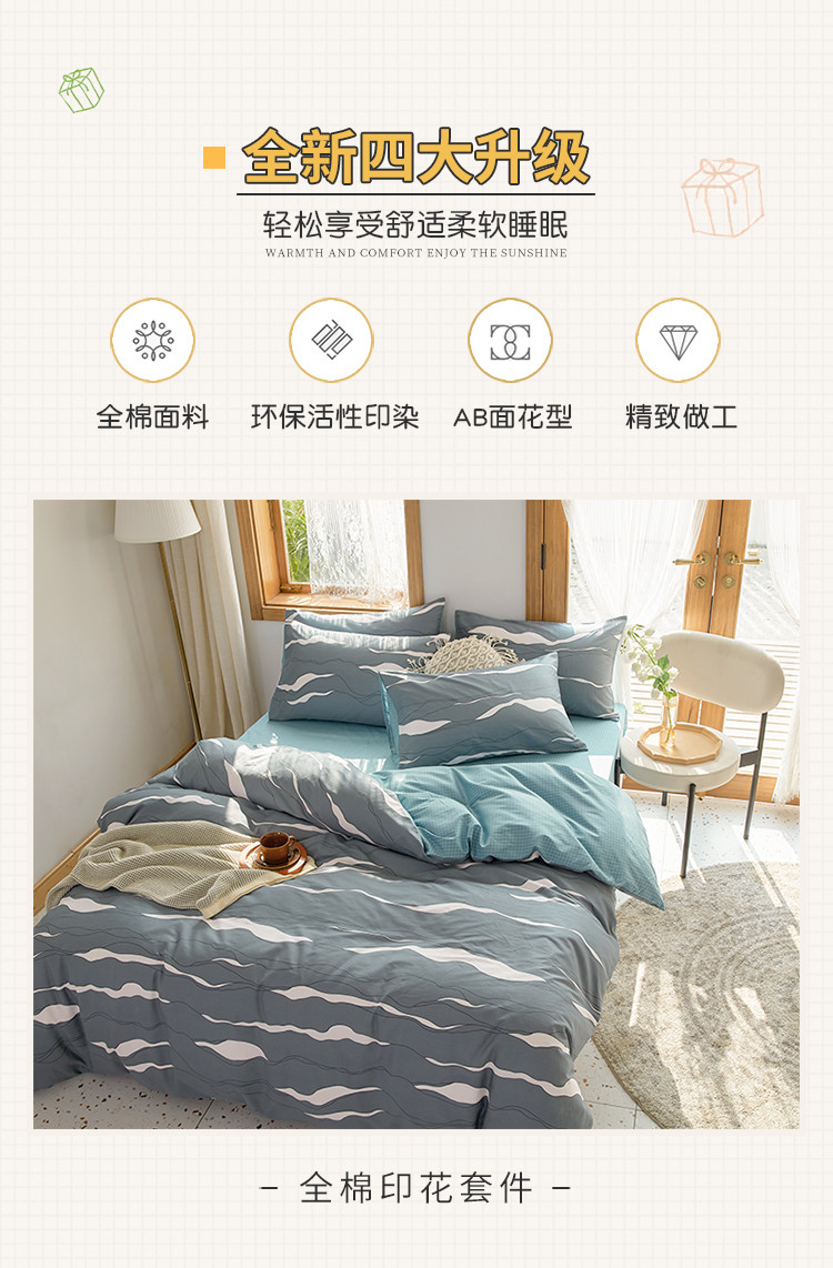(总)仟网汇 2026新款亲肤舒适仿棉印花床盖四件套,豹纹喵咖,蛋糕派,灰小格,马戏团,萌萌兔,梦幻灰,梦幻紫,南瓜季,泡芙小象,皮皮狗,奇奇,圣诞夜,甜心喵,童趣,五彩斑斓,小木马,小时光,小熊头,鱼多多,逐梦,组合图仅供参考不可下单