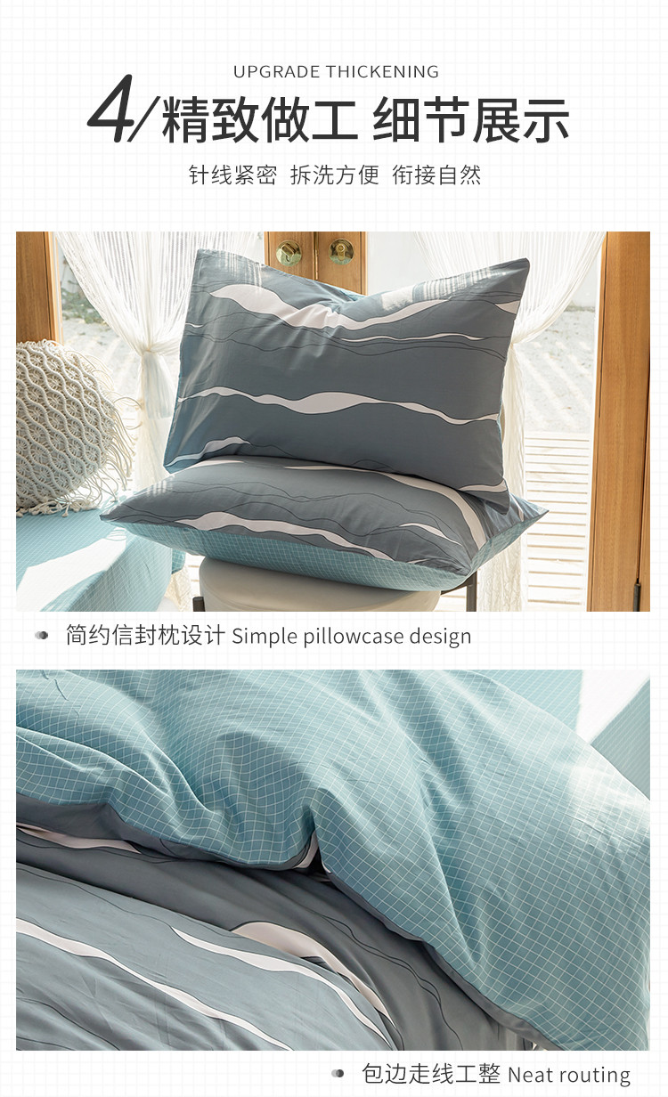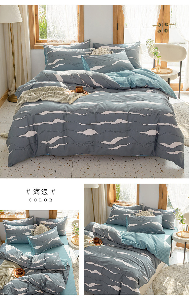 商品名称:仟网汇 2021新款春夏全棉北欧风几何系列四件套 海浪
