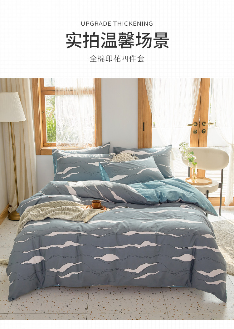 仟网汇 2021新款春夏全棉北欧风几何系列四件套 海浪