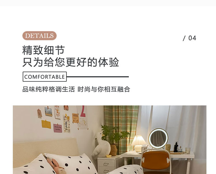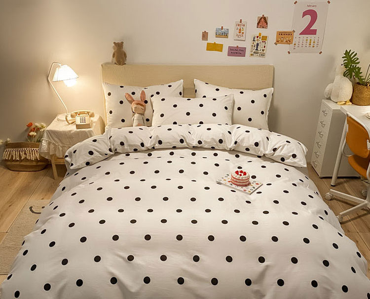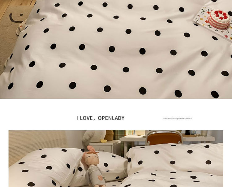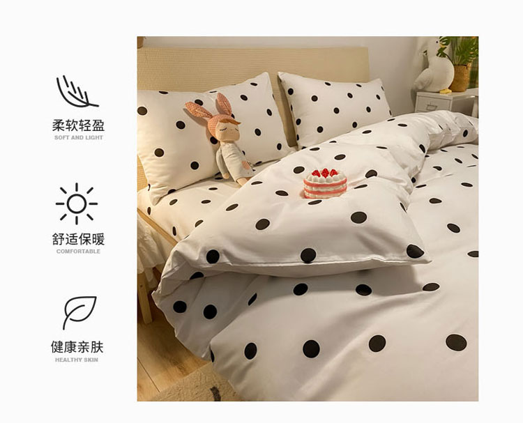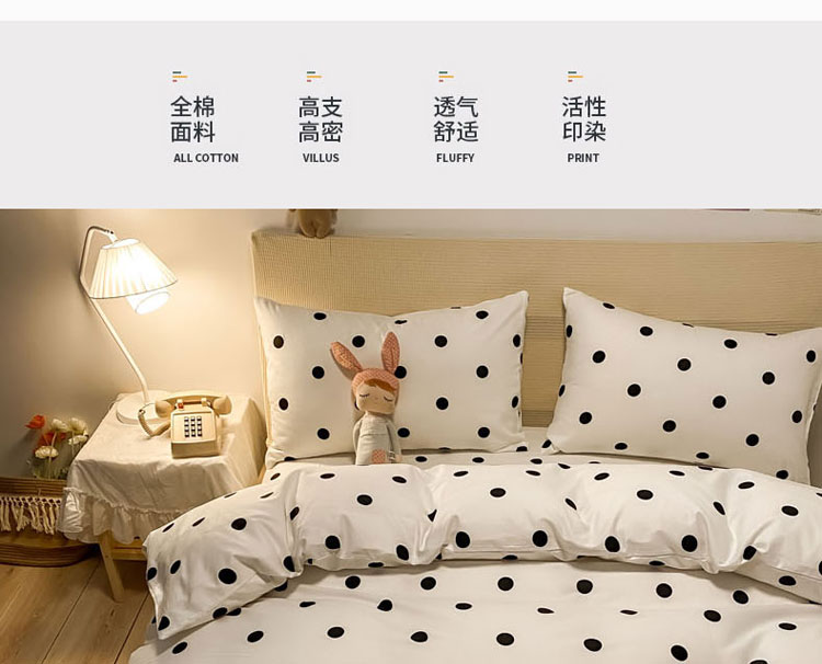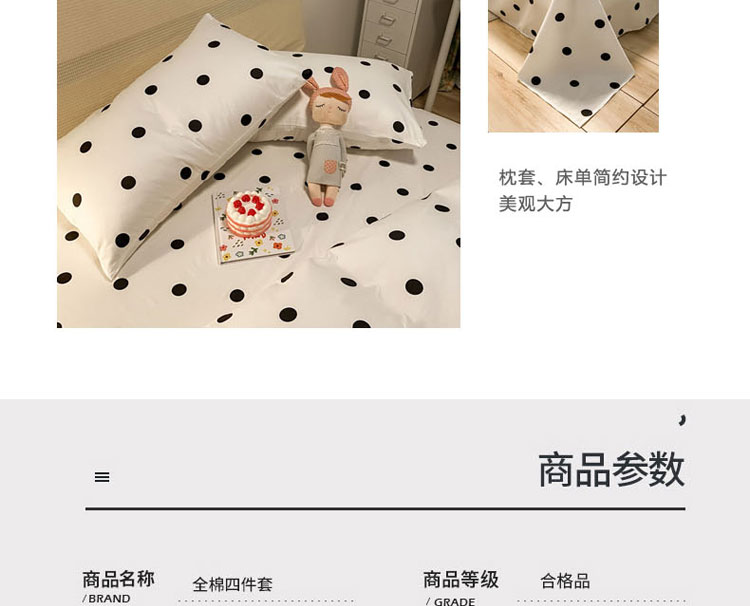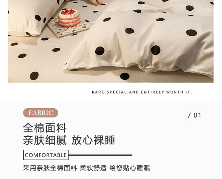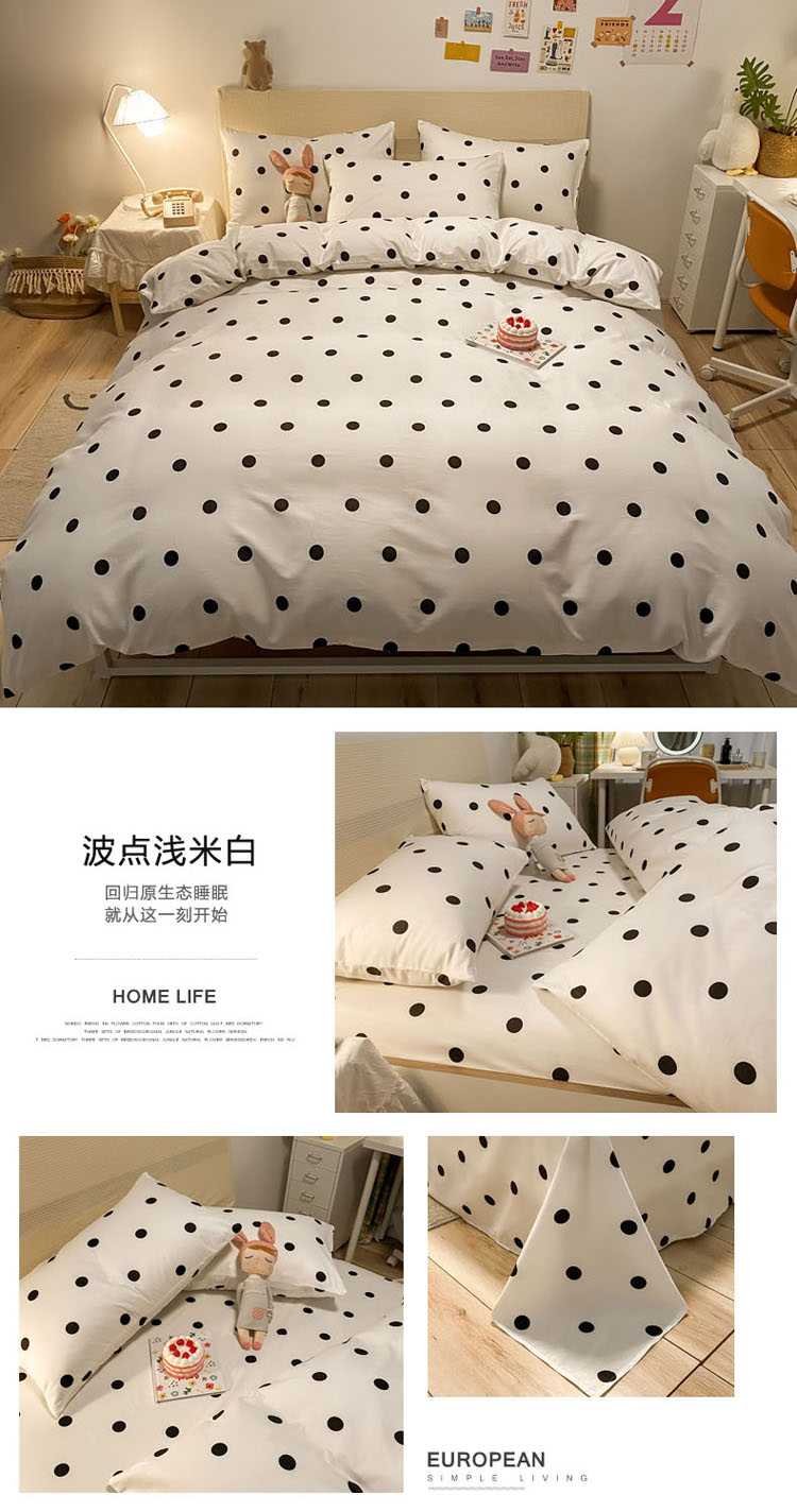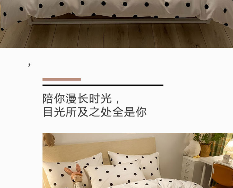 当前位置: 91家纺网 > 商品网购 > 床品套件 > 四件套 > 全棉普通四件套 > 梦家居 2021新款全棉波点系列四件套 波点浅米白