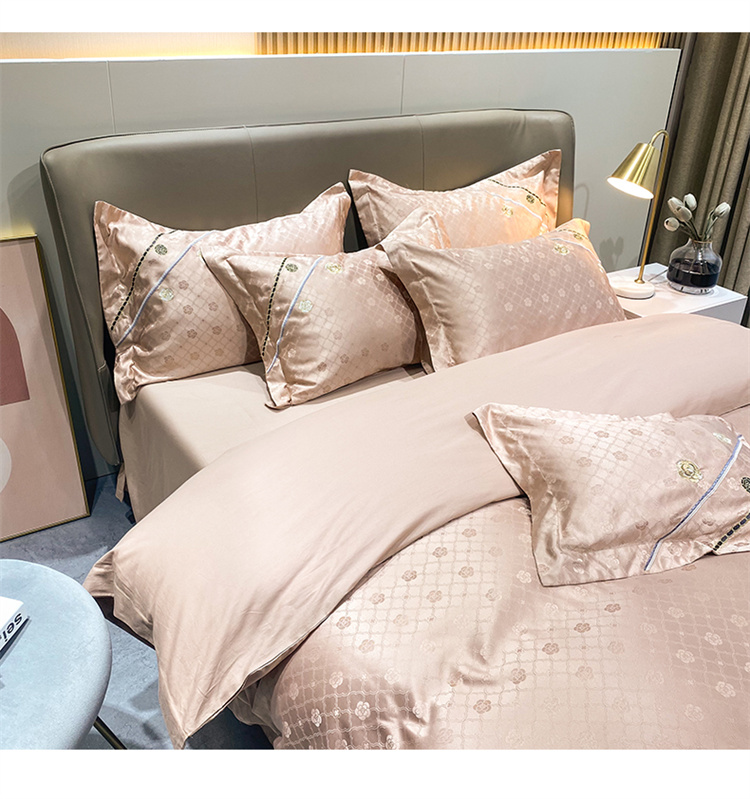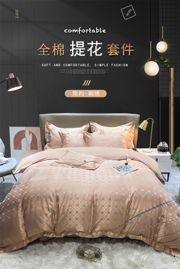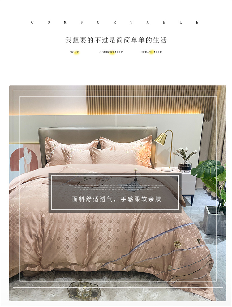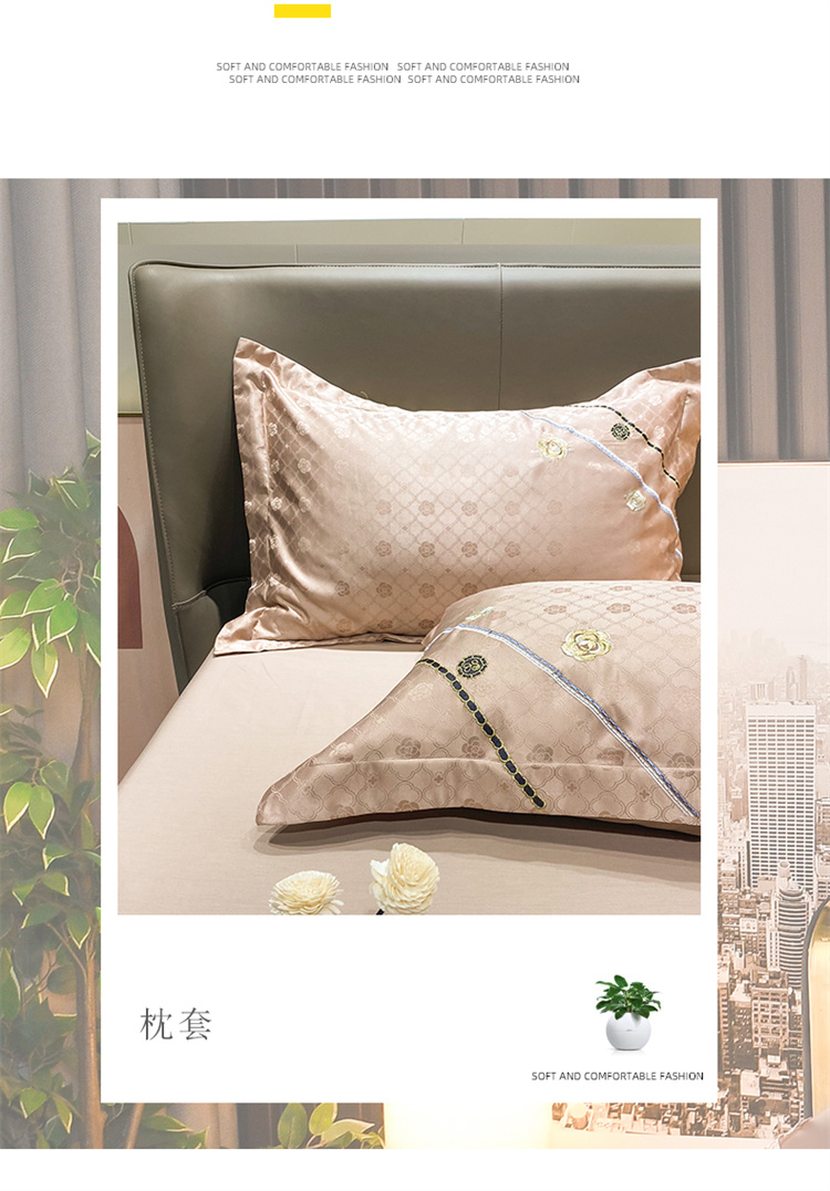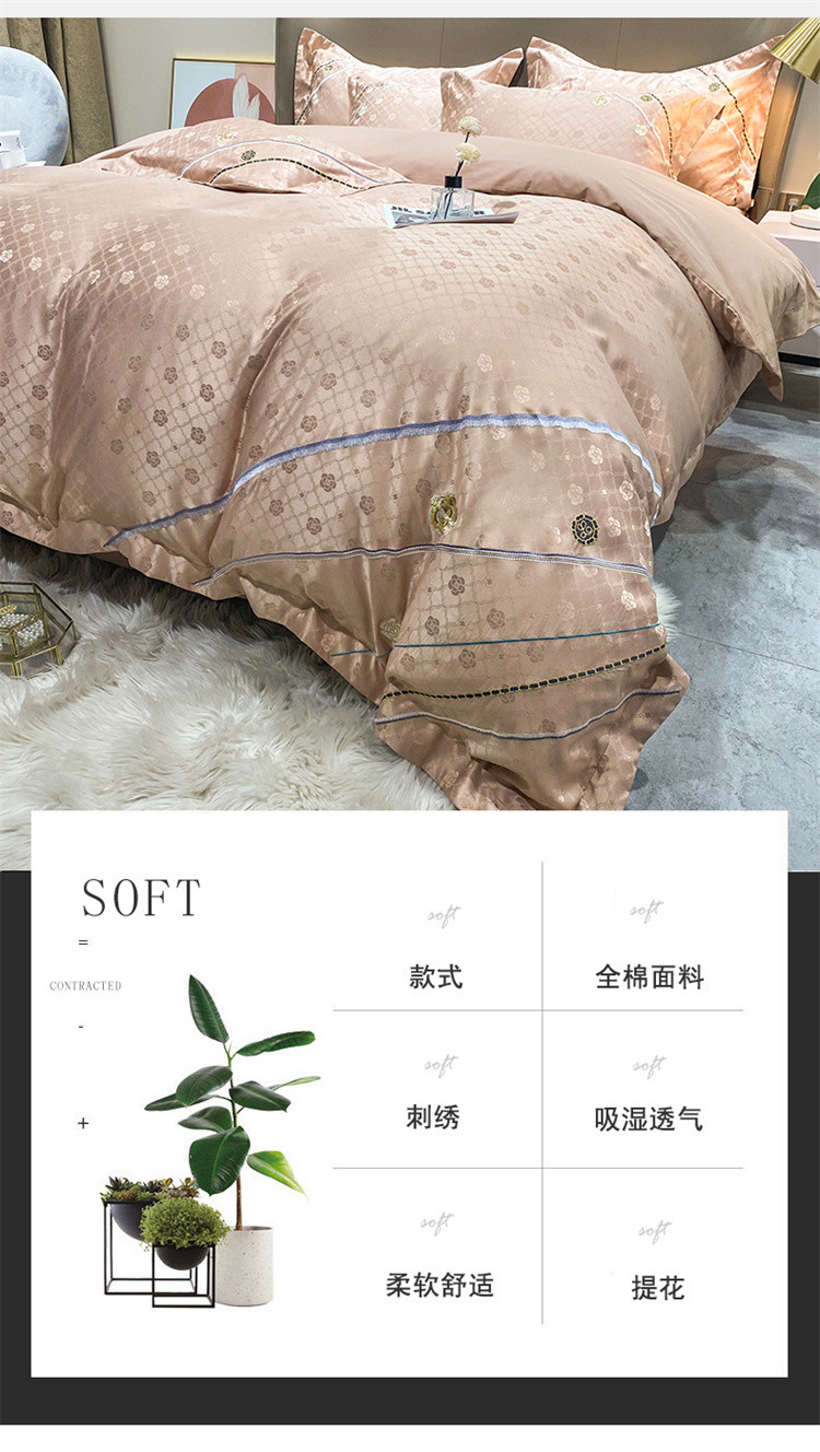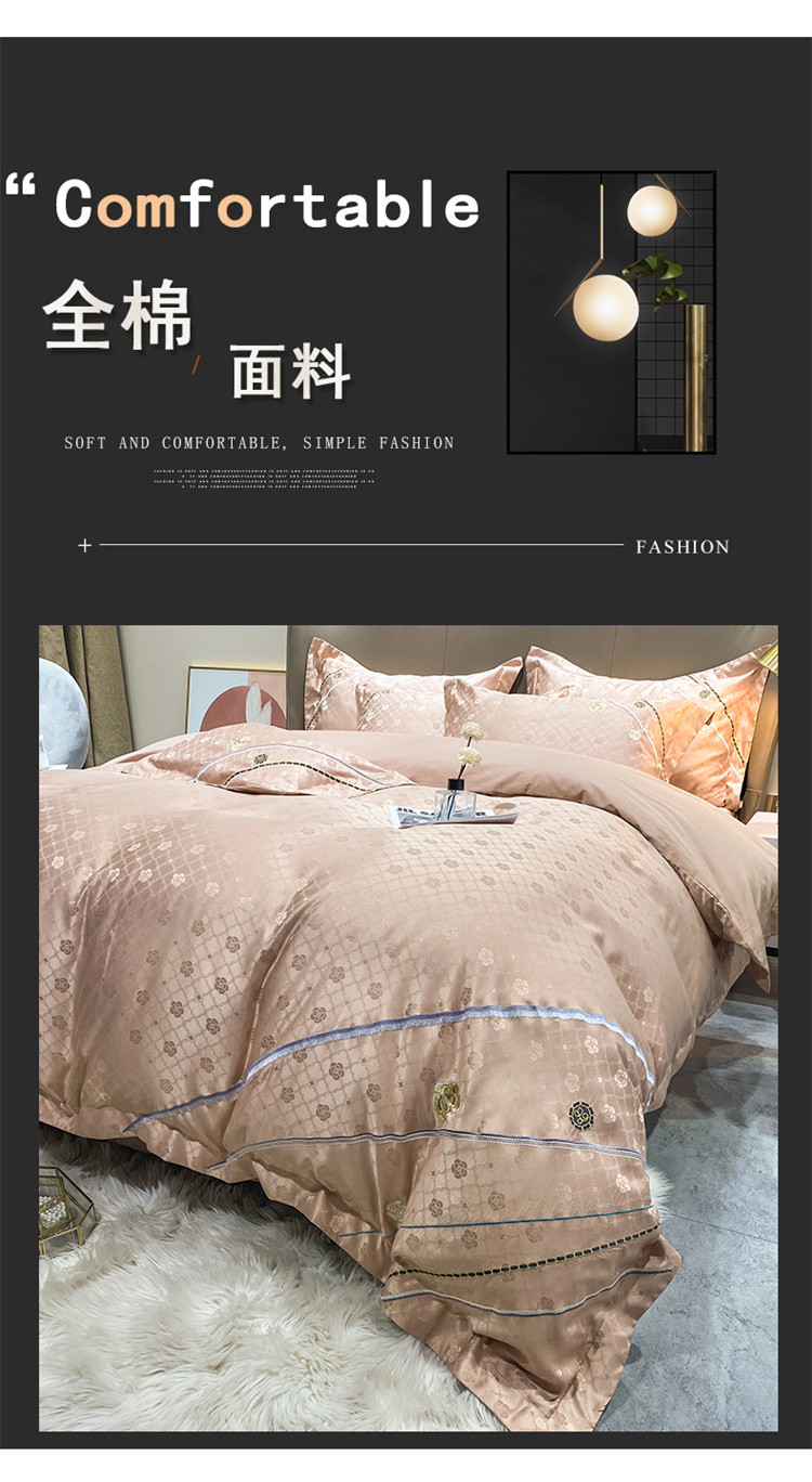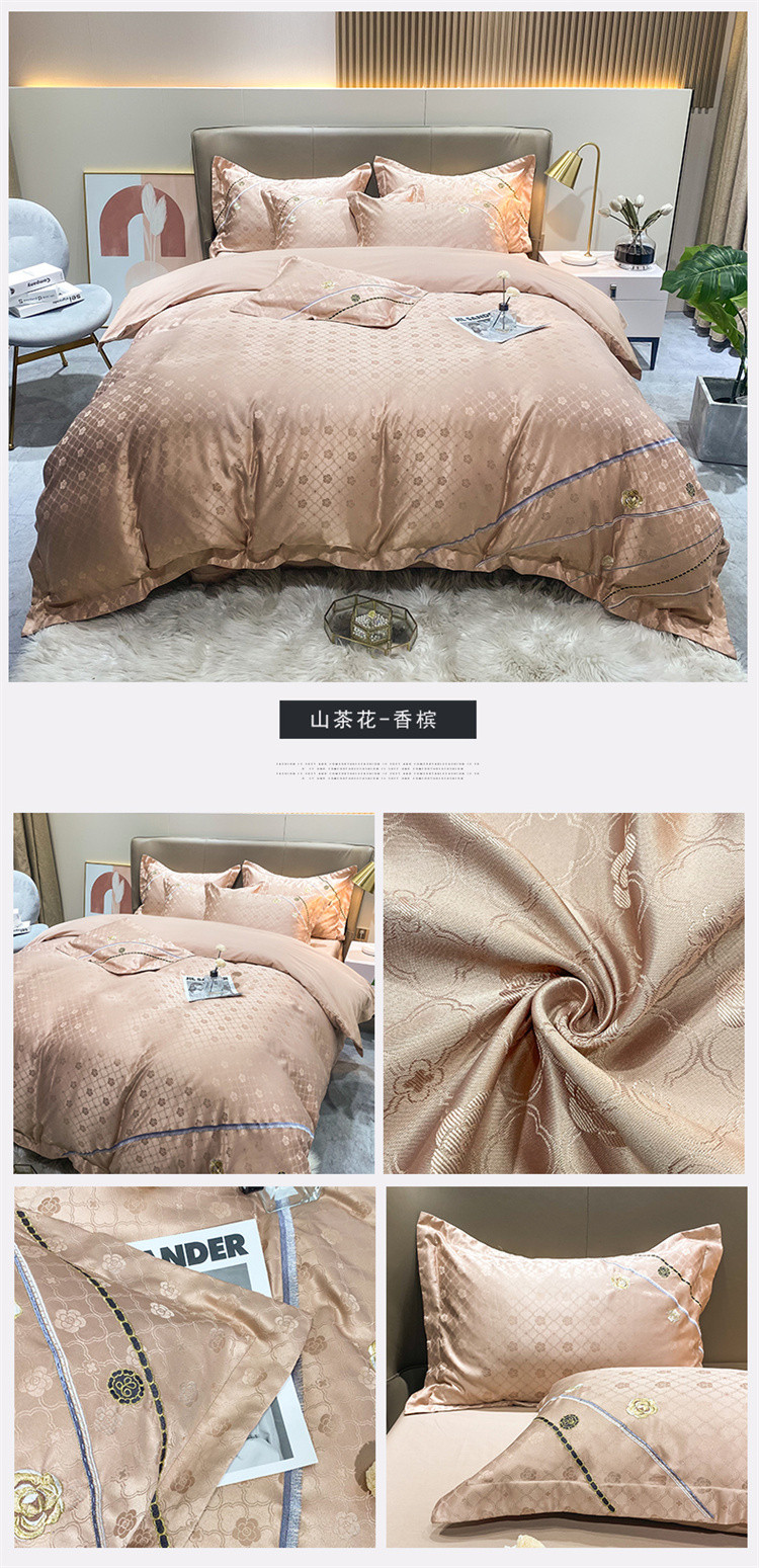 商品名称:安妮家居2021新款山茶全棉提花四件套 山茶花-香槟