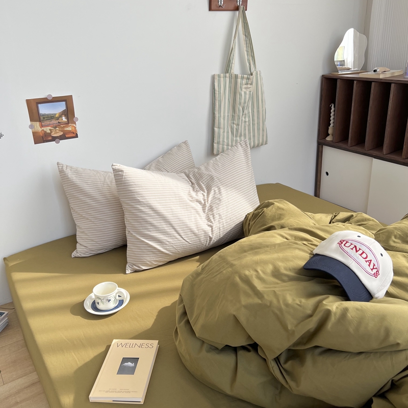 当前位置: 91家纺网 > 商品网购 > 床品套件 > 四件套 > 水洗棉四件套 > 六巷胡同 2023新款韩国ins博主条纹混搭纯色系四件套 伯牙琴弦
