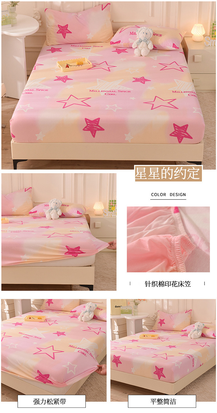 商品名称:甜之梦 2025新款针织棉印花单品床笠 星星的约定