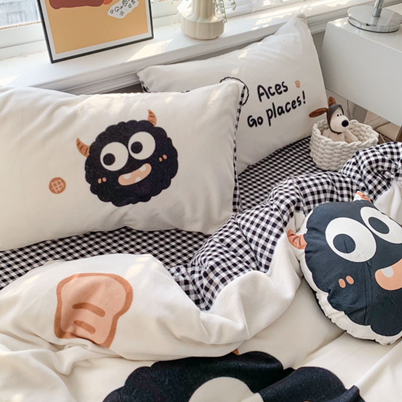 商品名称:澳萝拉2023新款大版数码牛奶绒五件套配送同款小抱枕 黑煤球