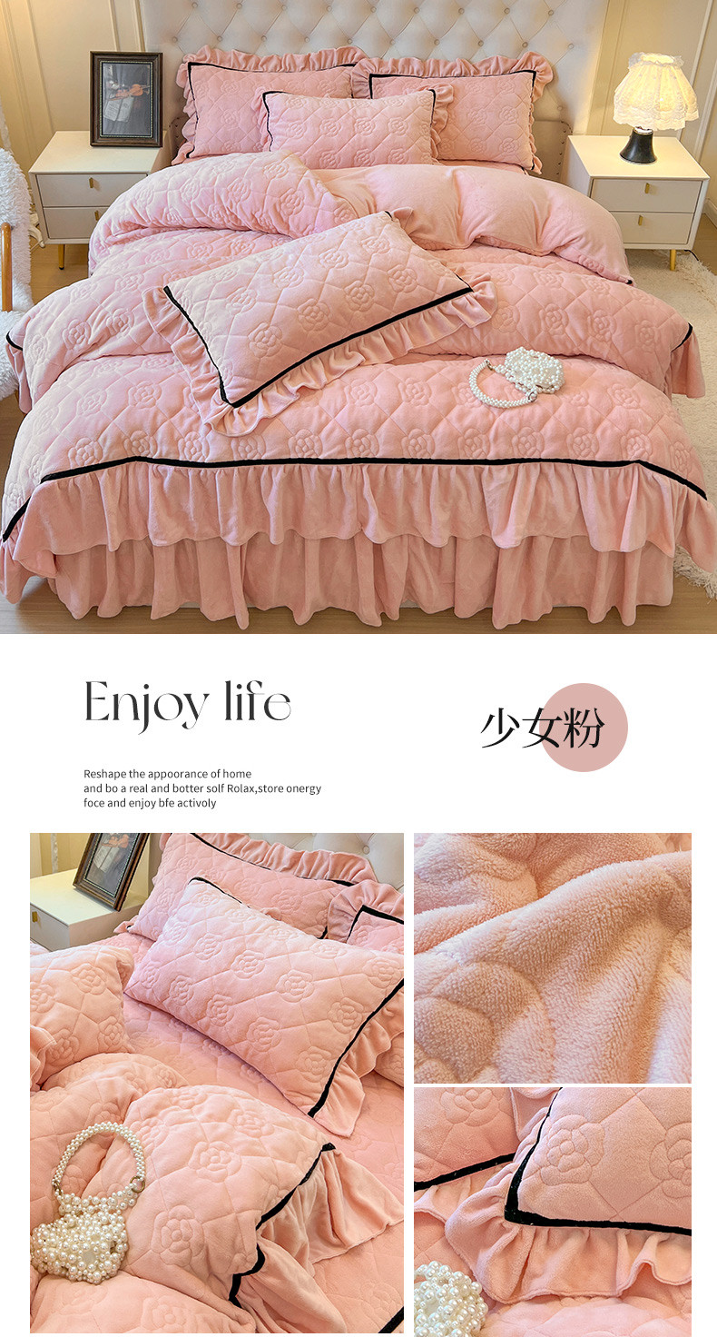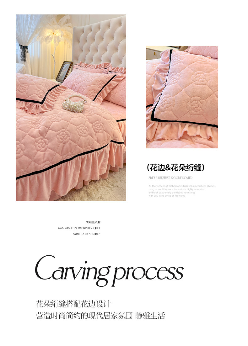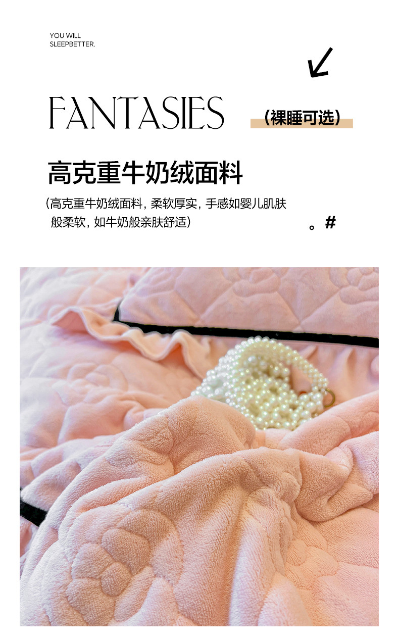 当前位置: 91家纺网 > 商品网购 > 床品套件 > 四件套 > 牛奶绒四件套 > 麒豆豆 新款高克重加厚保暖牛奶绒法式大花边四件套-眷恋 眷恋-少女粉