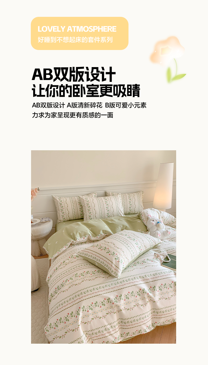 (总)澳萝拉 2022新款全棉印花花边四件套,点点心动,蓝心邂逅,萌系甜心,心动初恋